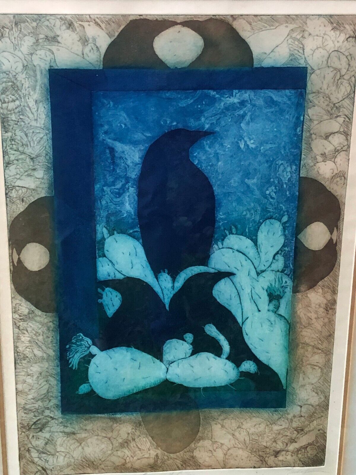BECKER Original ABSTRACT MODERN SERIGRAPH AP ARTIST PROOF Crows & Cactus Western