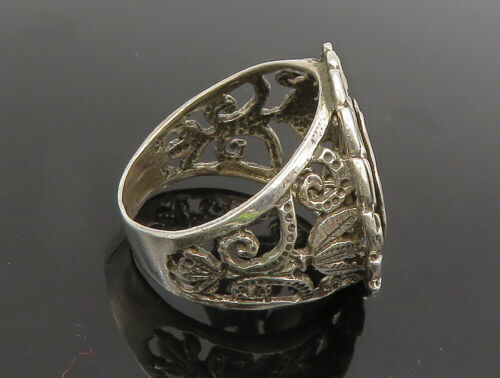 EUROPEAN 925 Silver - Vintage Abstract Cut Out Leaf Scroll Ring Sz 11 - RG24396