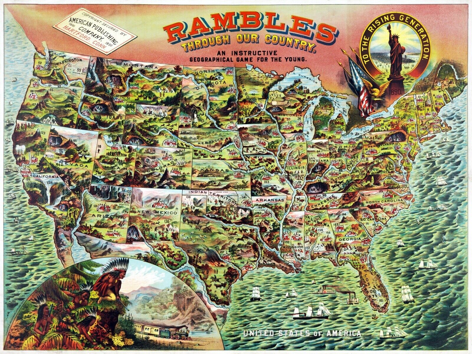 12932.Decor Poster.Wall art.Home vintage interior design.Rambles on the U.S map