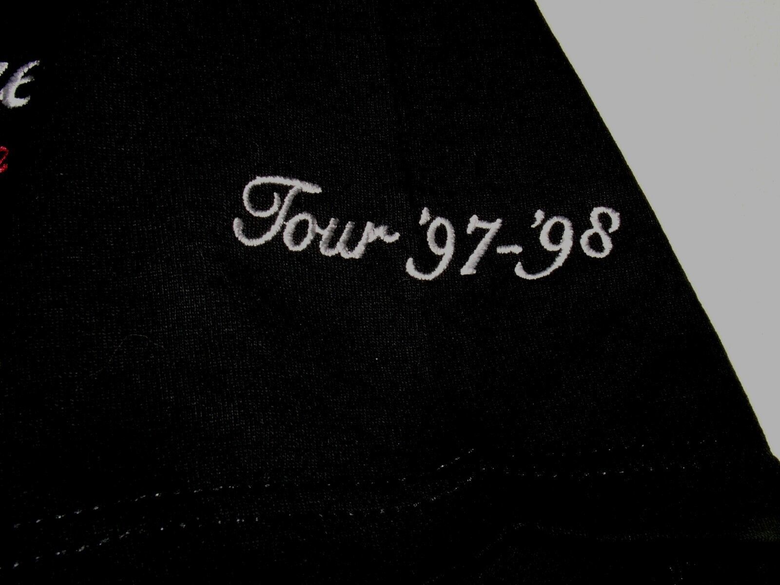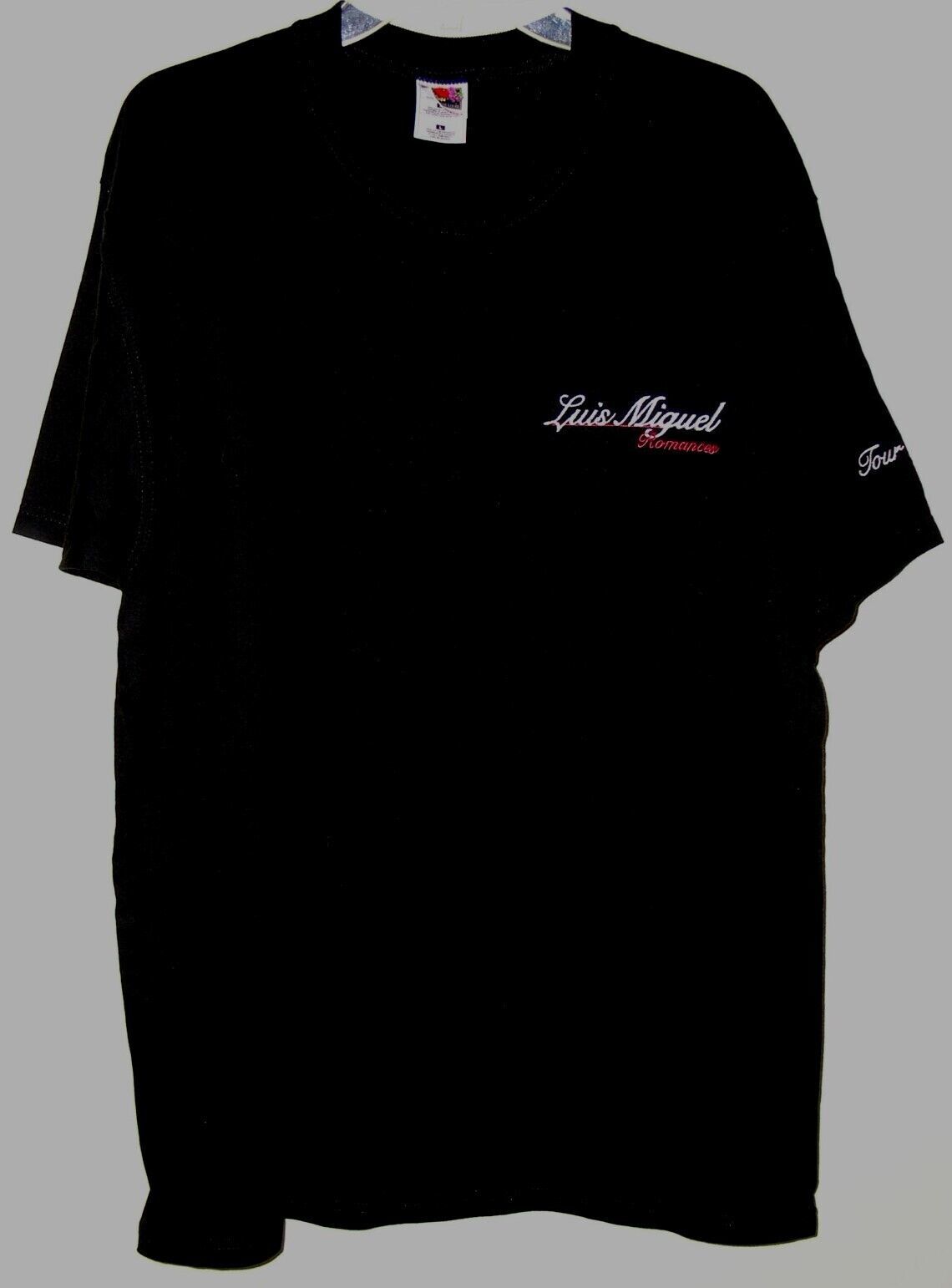 This is a vintage t shirt entitled, "Luis Miguel Romances Tour '97-'98". Embroidered breast print and embroidered sleeve makes this all the nicer. Tag reads: Fruit of the Loom Lofteez. There is no back printing. A terrific item for the fan or collector.