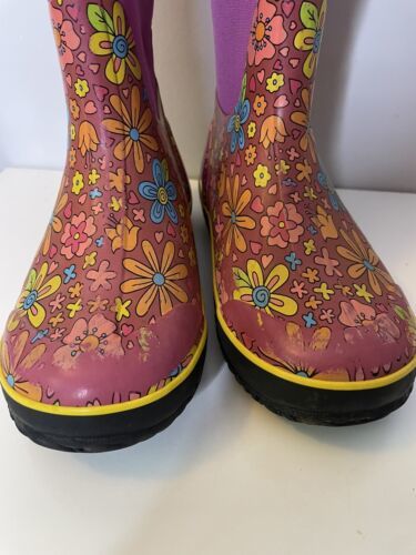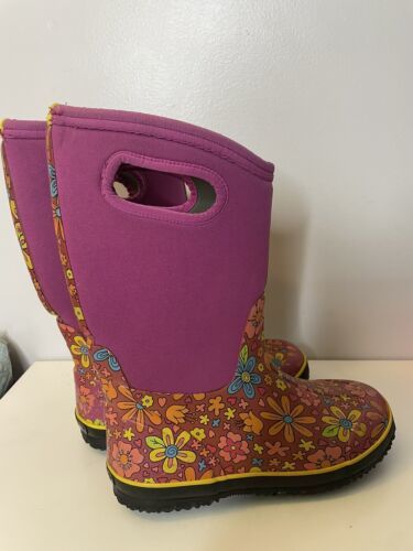 BOGS Girls CRAZY DAISY Tall High Flower Rubber Waterproof Boots Size 5