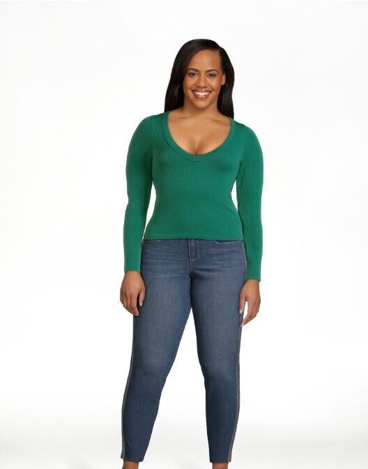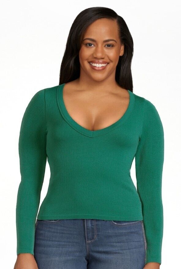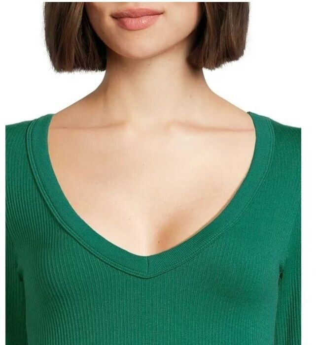 No Boundaries Juniors V-Neck Seamless Tee, Green Size L(11-13)
