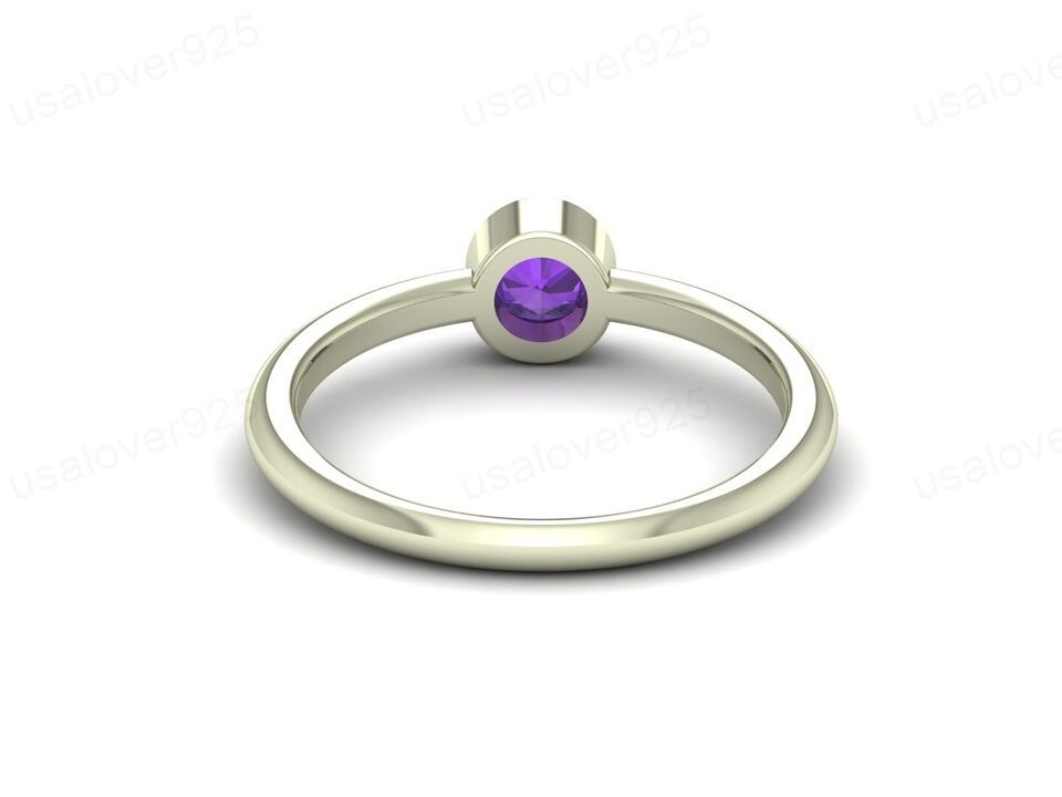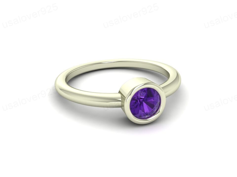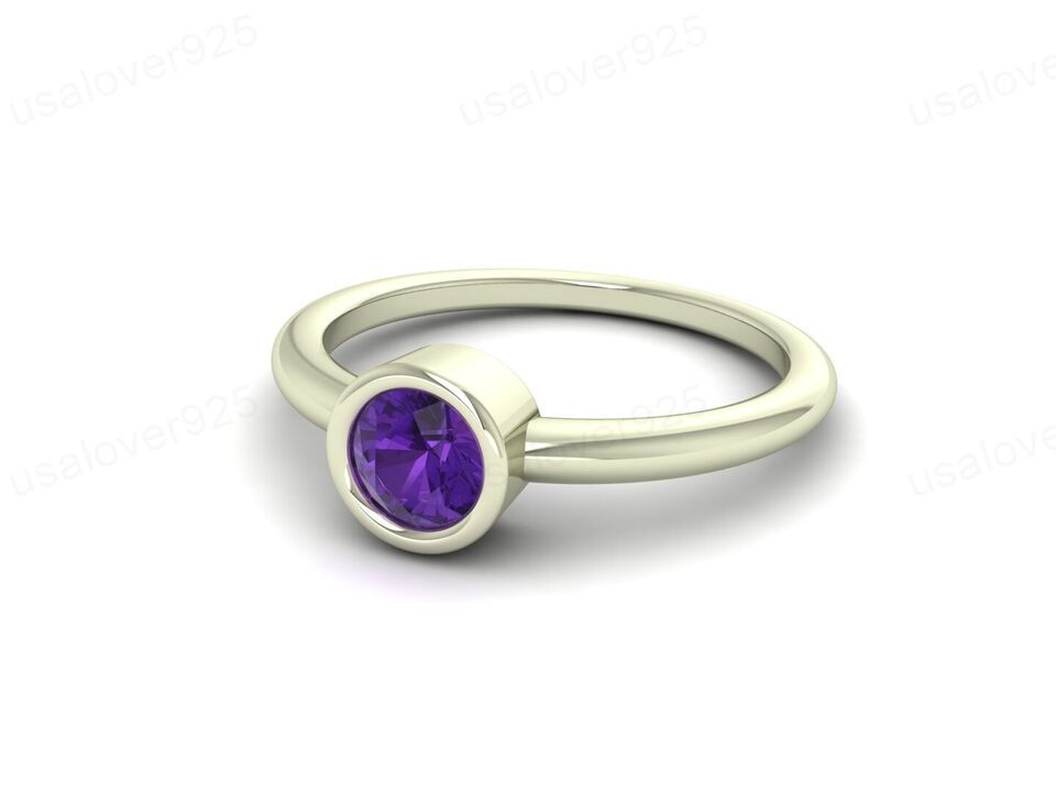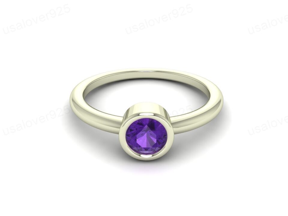 Natural Purple Amethyst Round Gemstone Modern Solitaire Women Ring Jewelry