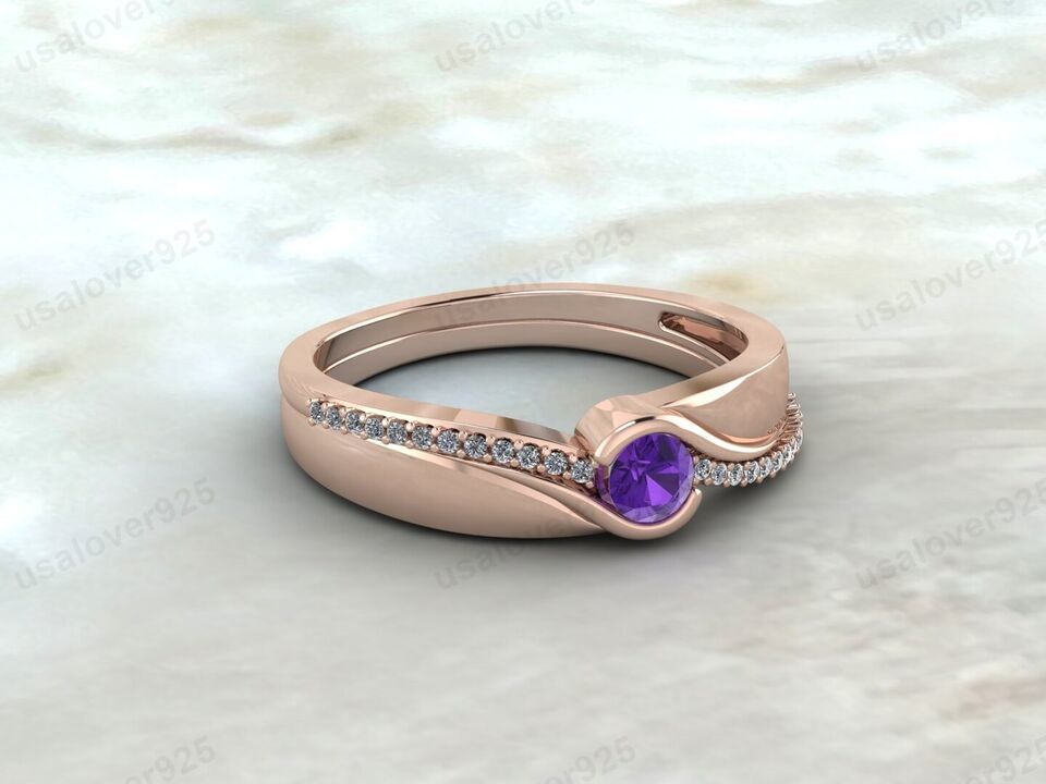 Amethyst Round Gemstone 925 Silver Handmade Solitaire Women Party Wear Ring