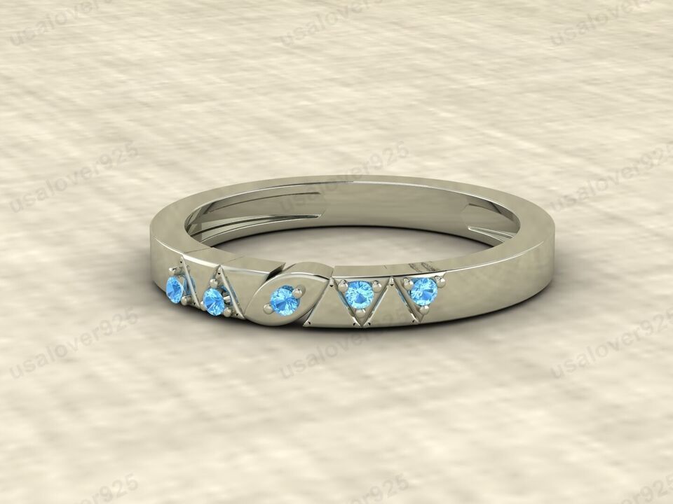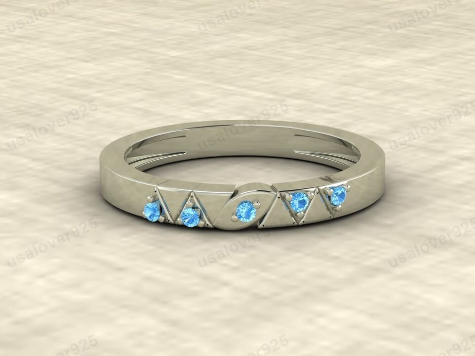 Blue Topaz Round Stone Handmade Half Eternity Women Unique Gift Women Band Ring