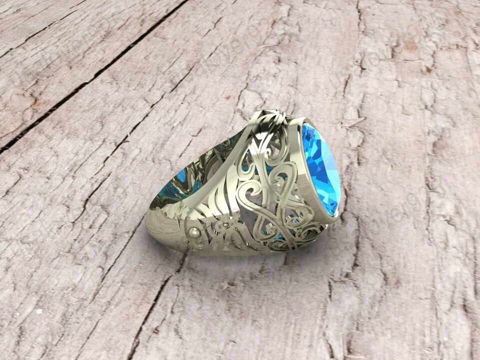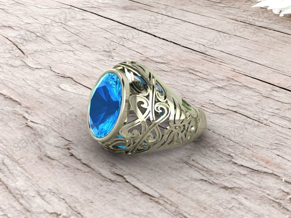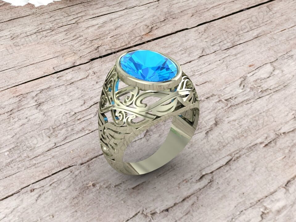 Blue Topaz Oval Gemstone 925 Sterling Silver Handmade Men Signet Ring Jewelry