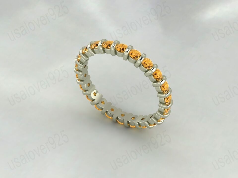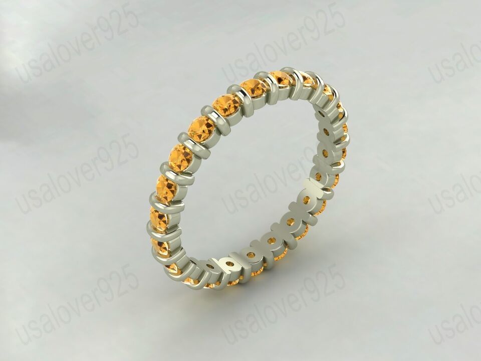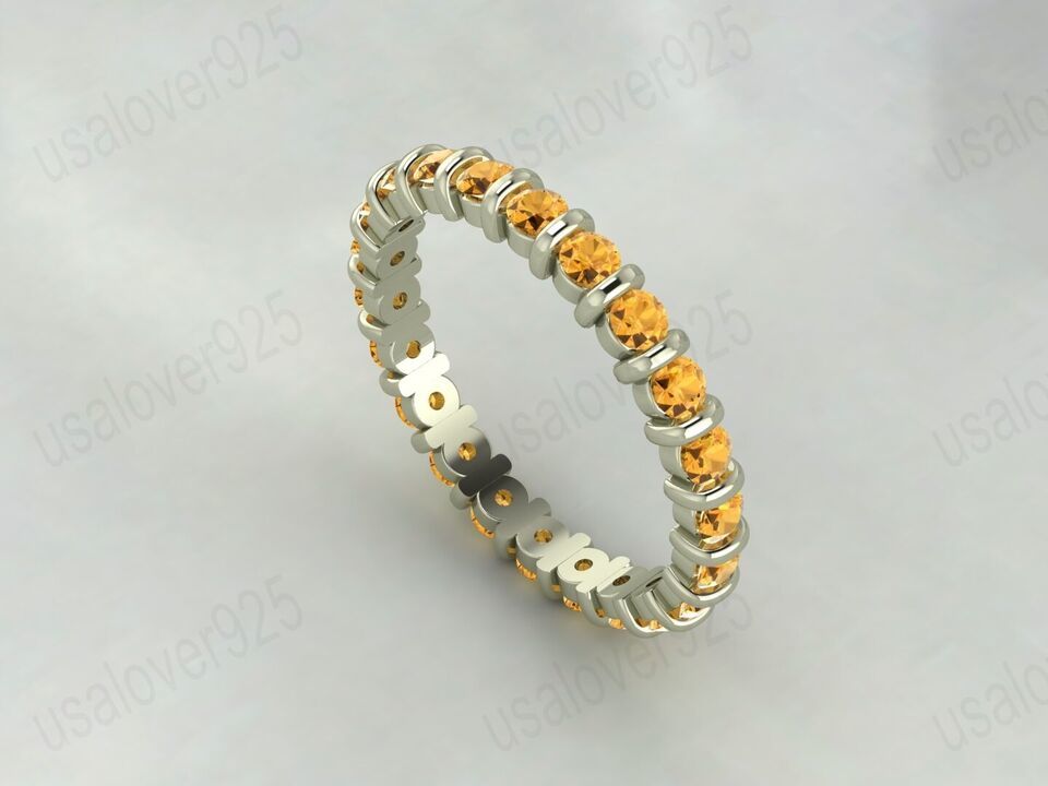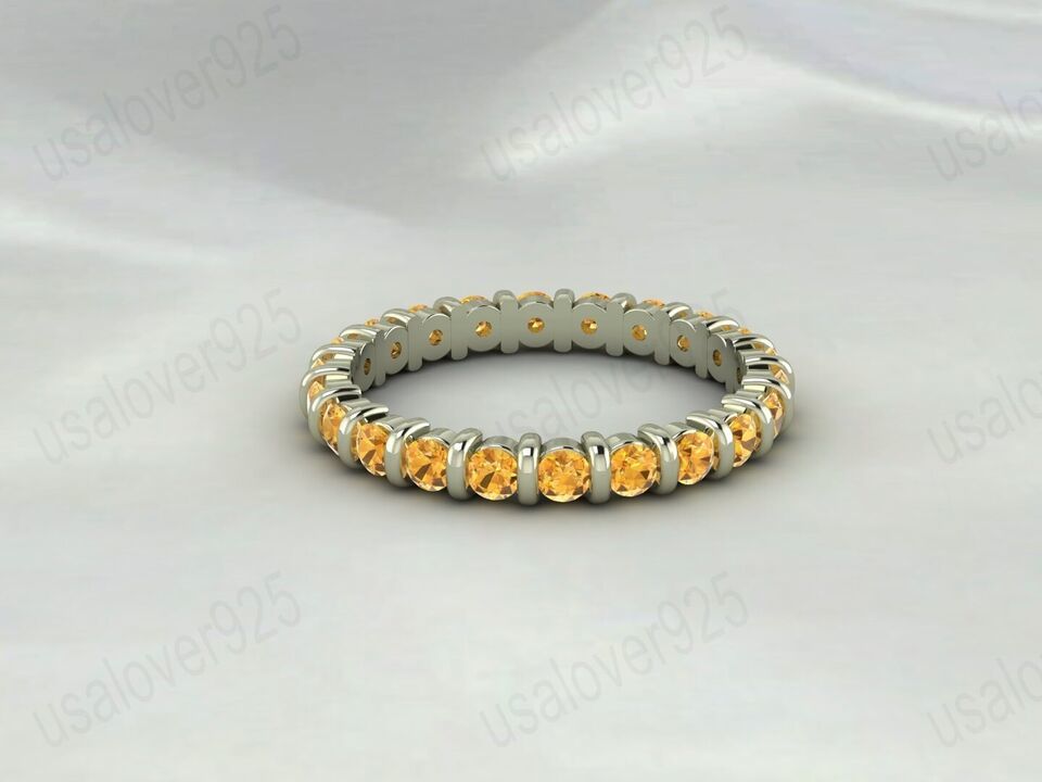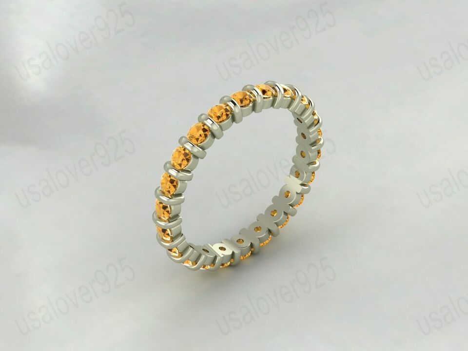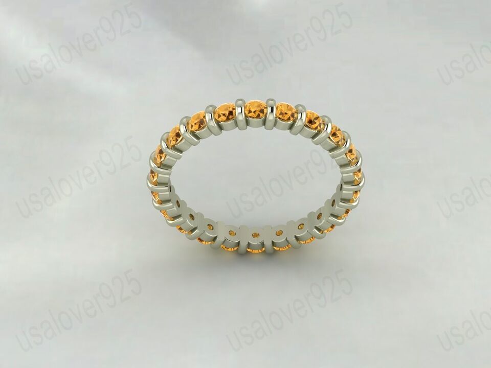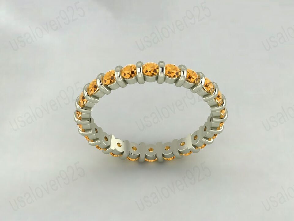 Citrine Round Gemstone Sterling Silver Full Eternity Band Women Ring Jewelry