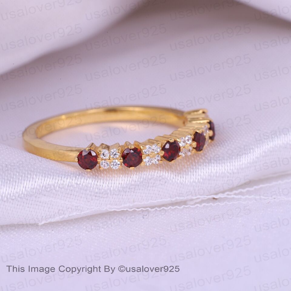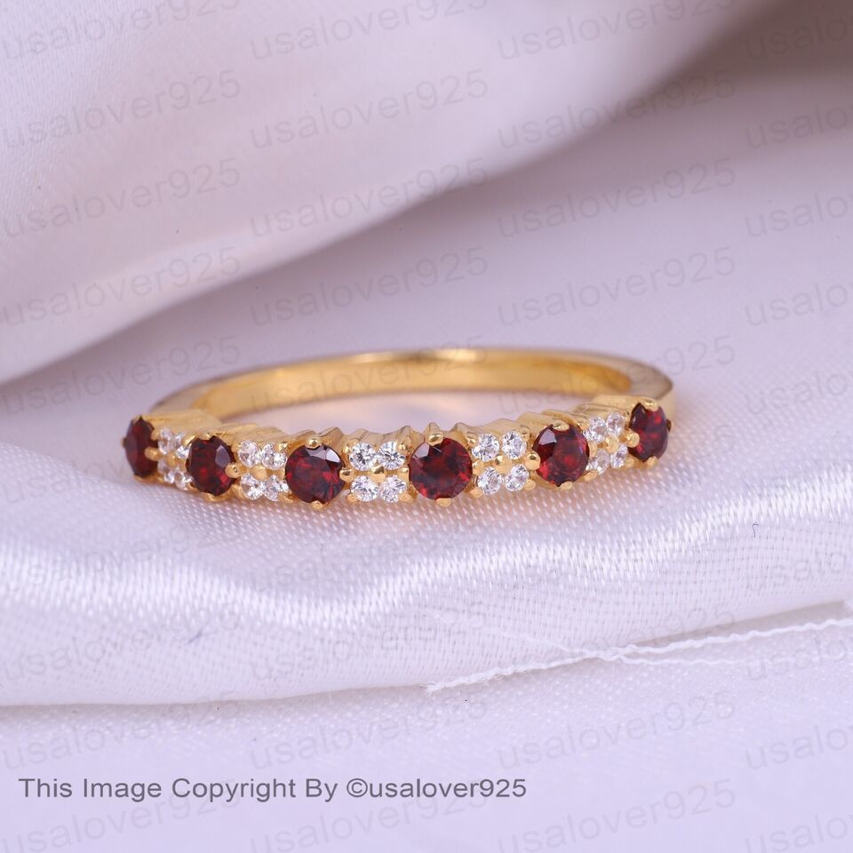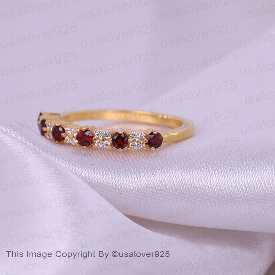 Red Garnet And Diamond Gemstone Sterling Silver Women Eternity Band Ring Jewelry