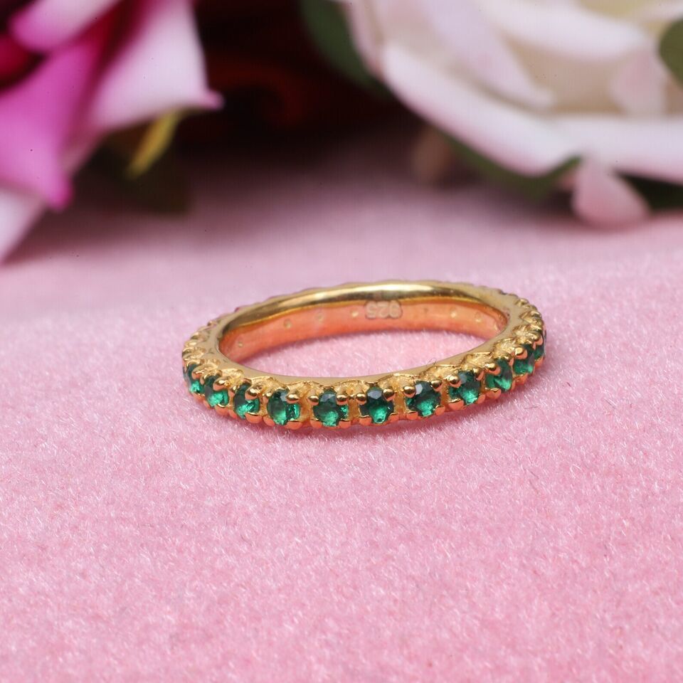 Natural Green Emerald Gemstone Sterling Silver Full Eternity Band Women Ring