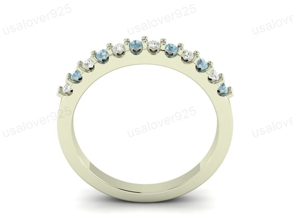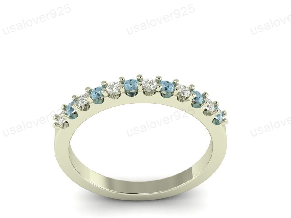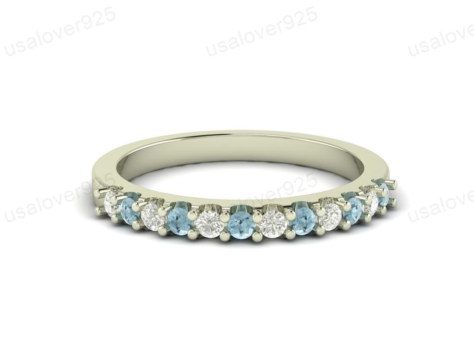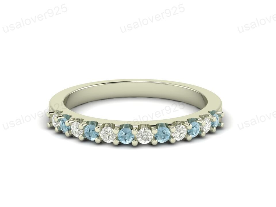 Natural Aquamarine Blue Gemstone Half Eternity Dainty Handmade Women Band Ring