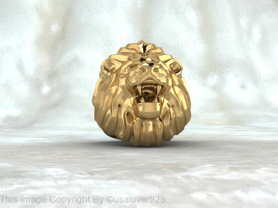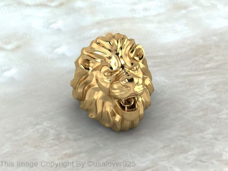 Forest King Lion Head High Quality Yellow Brass Yellow Gold Heavy Men Ring