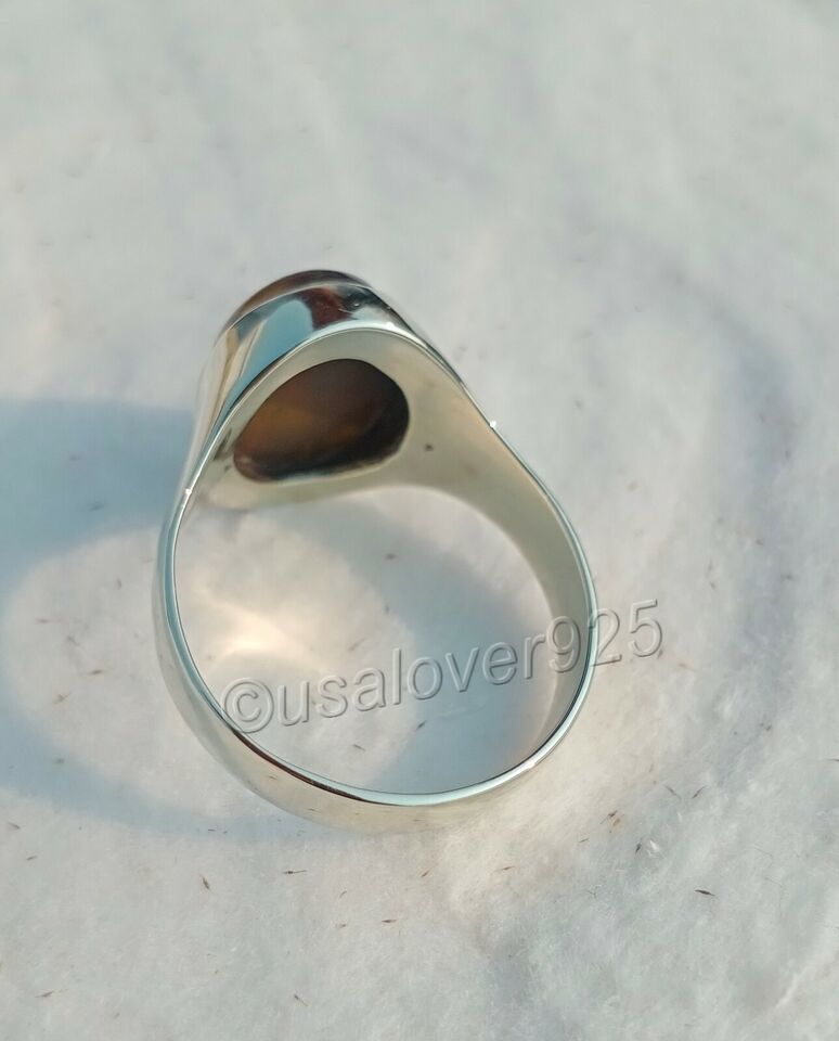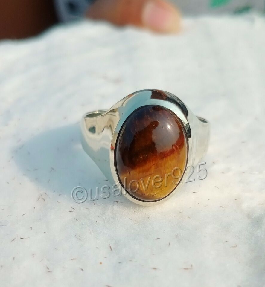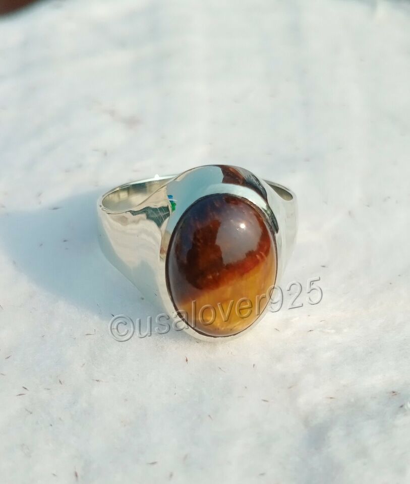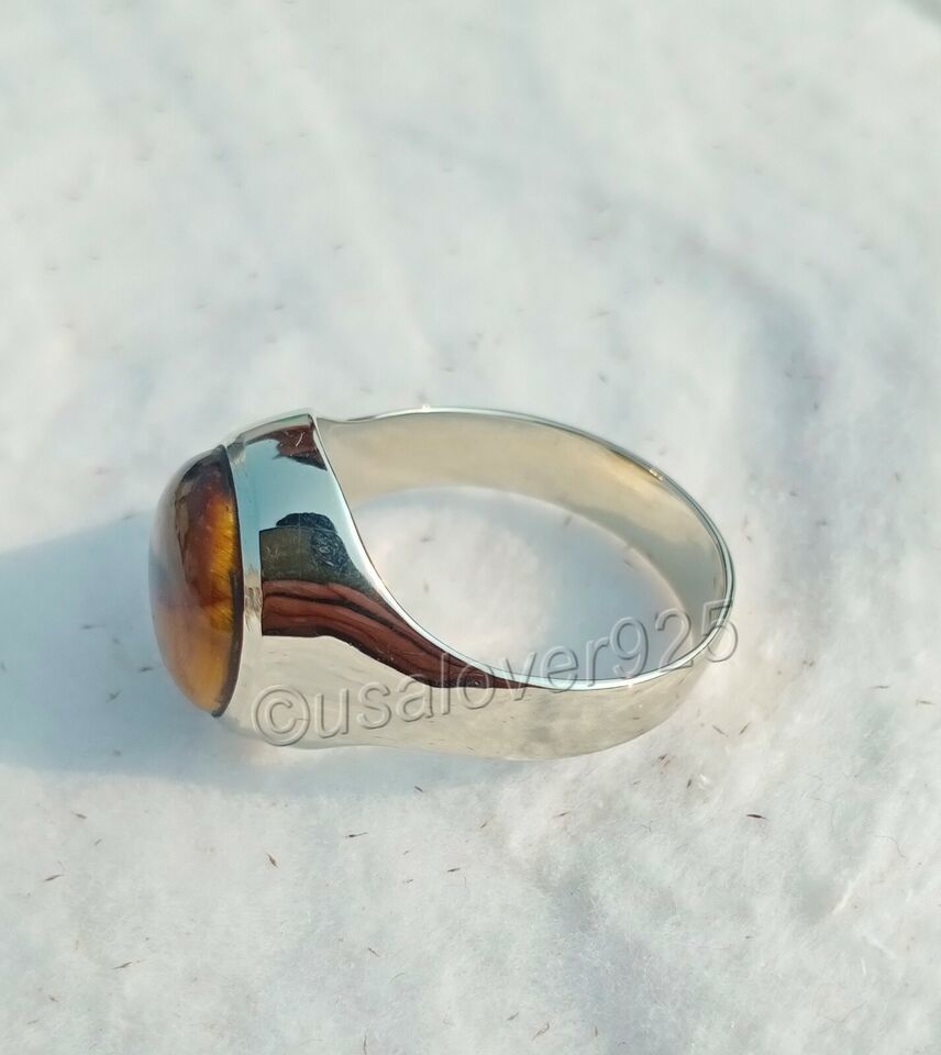 Natural Tiger Eye Oval Gemstone June Birthstone Handmade Signet Men Ring