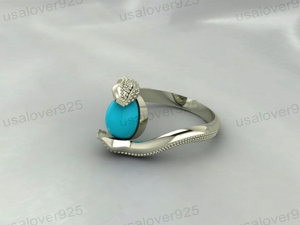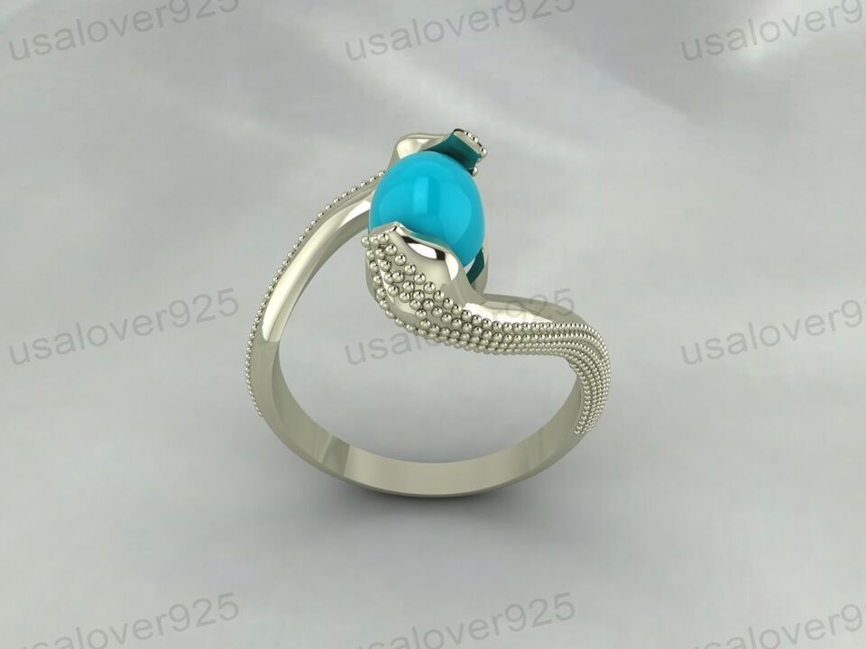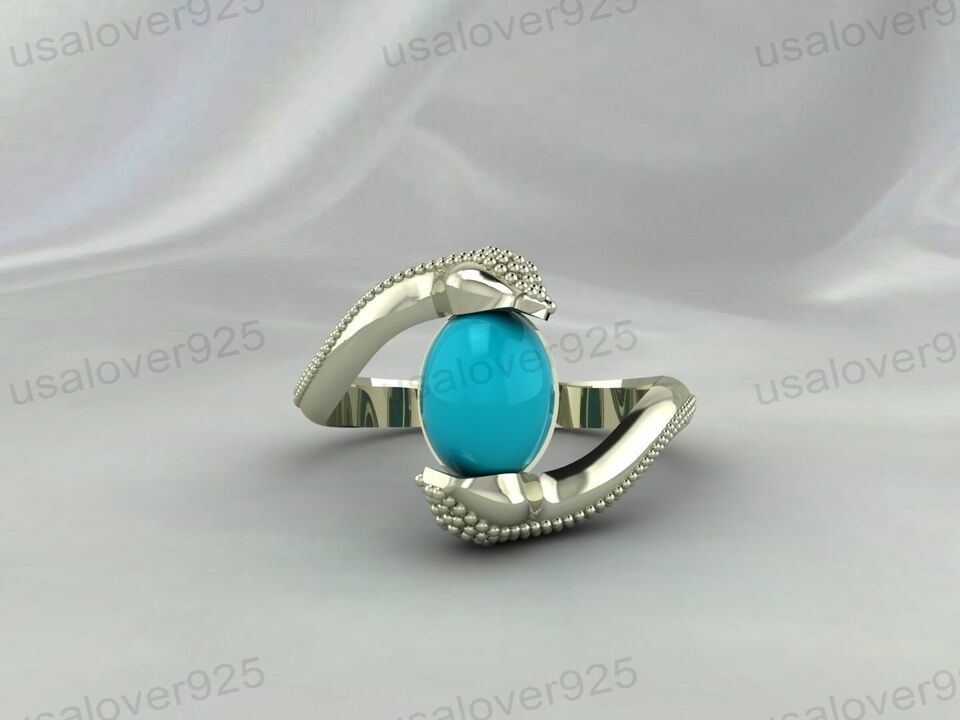 Blue Turquoise Oval Gemstone Unique Art Deco Handmade Women Ring jewelry