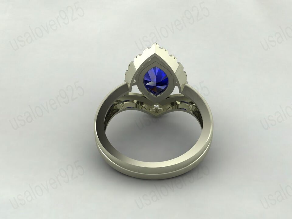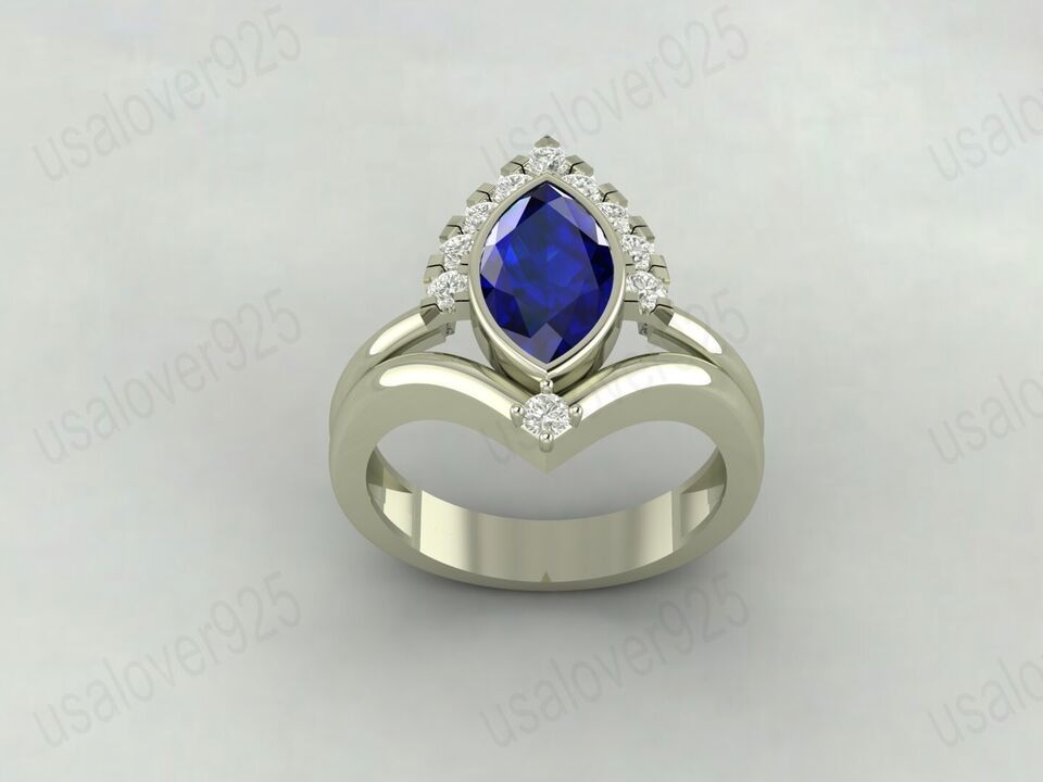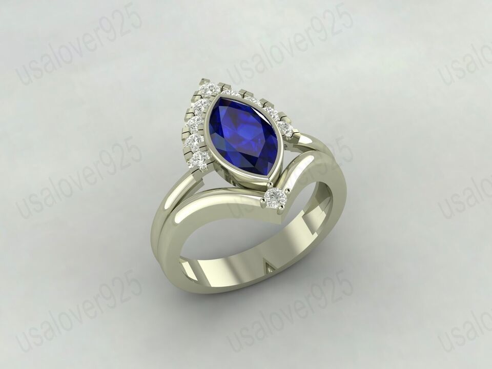 Blue Sapphire Marquise Gemstone 925 Sterling Silver Solitaire Women Ring Jewelry