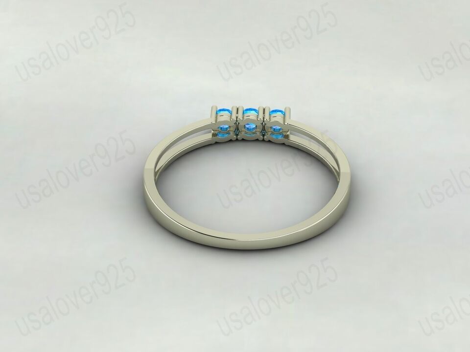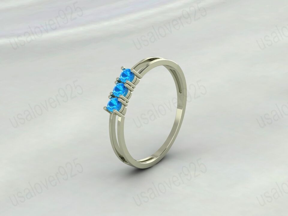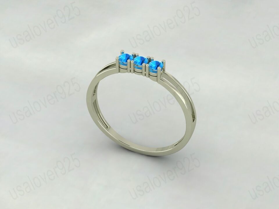 Blue Topaz Gemstone Sterling Silver Three Stone Wedding Women Ring Jewelry