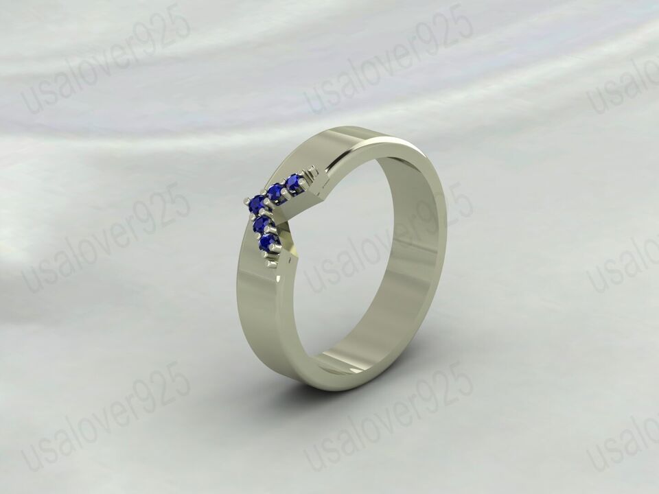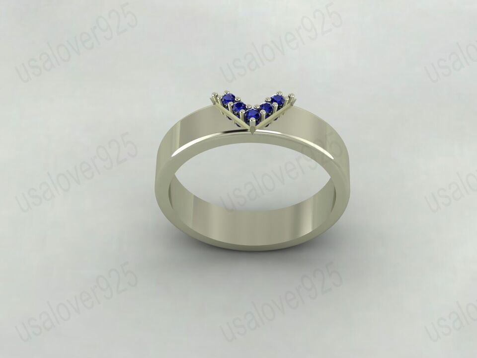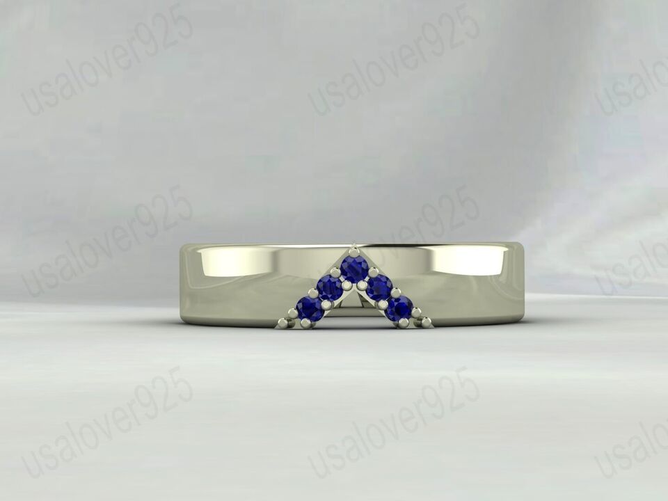 Blue Sapphire Stone V Shaped Sterling Silver Handmade Women Band Ring Jewelry