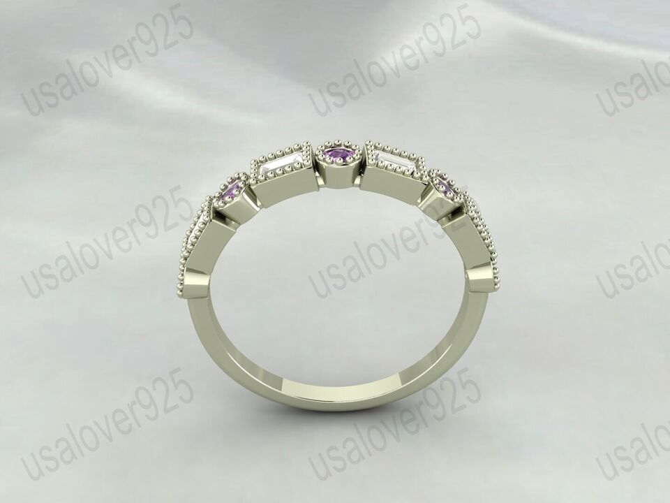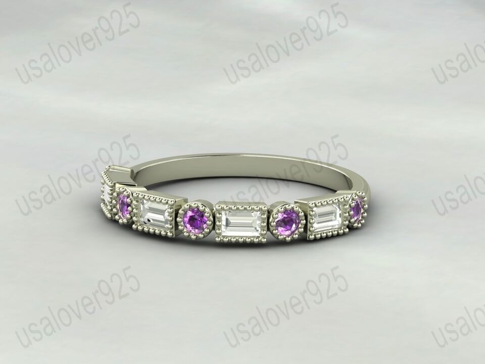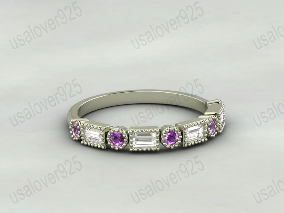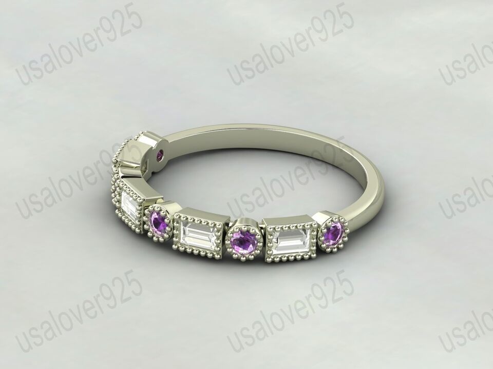 Alexandrite And Diamond Stone Silver Modern Women Eternity Band Ring Jewelry