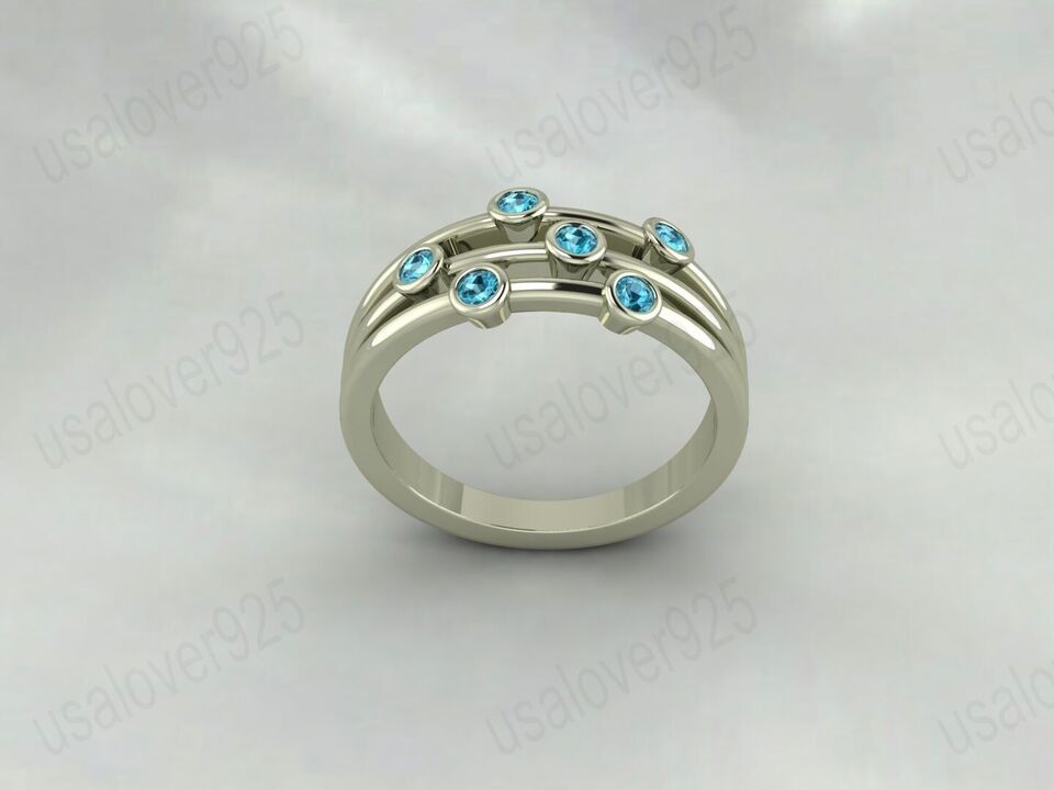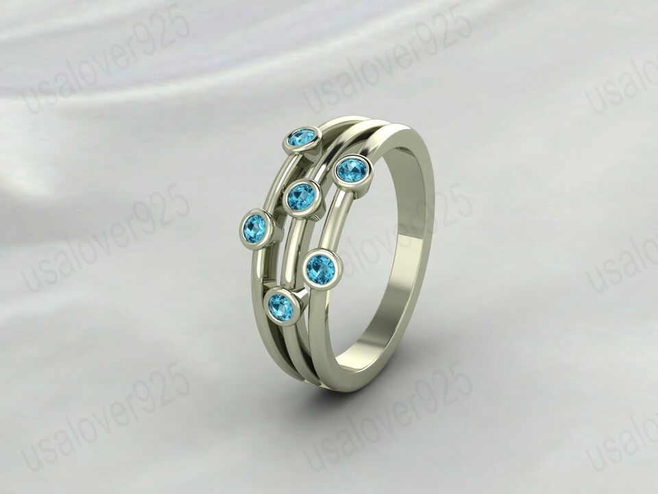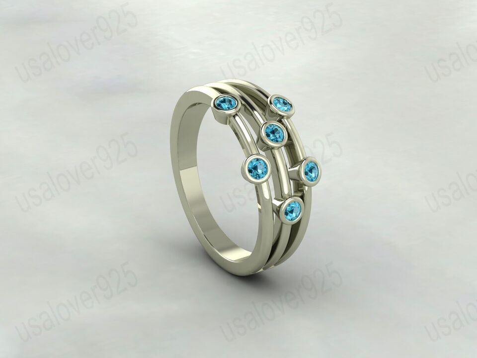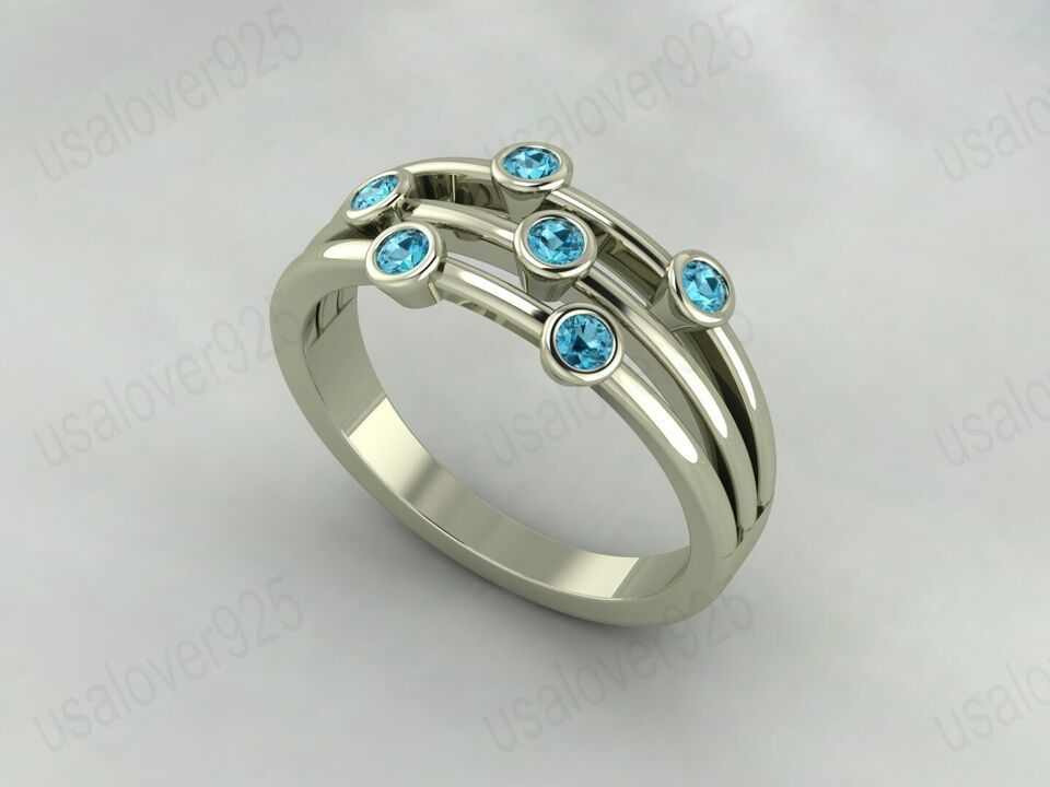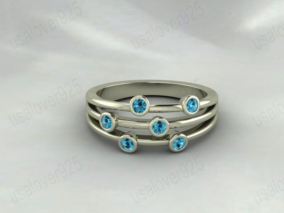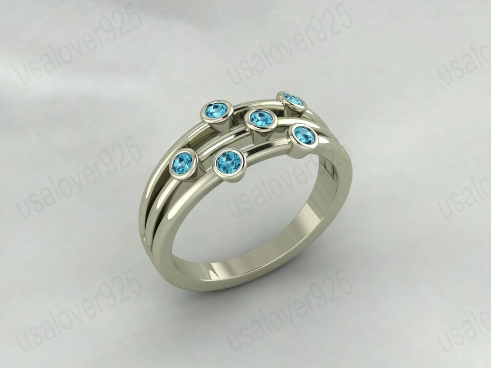 Blue Zircon Round Gemstone Sterling Silver Wedding Women Ring Jewelry