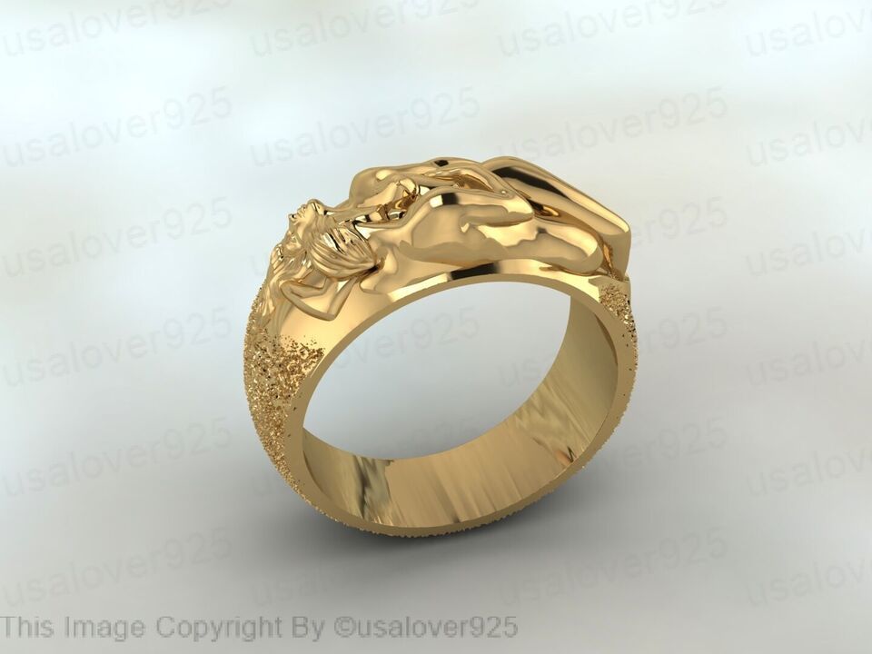 Antique Love Sterling Silver Yellow Gold Plated Unique Unisex Ring Jewelry