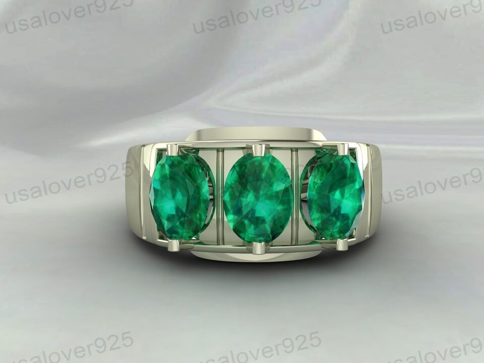 Emerald Green Oval Gemstone Sterling Silver Handmade Men Signet Ring Jewelry