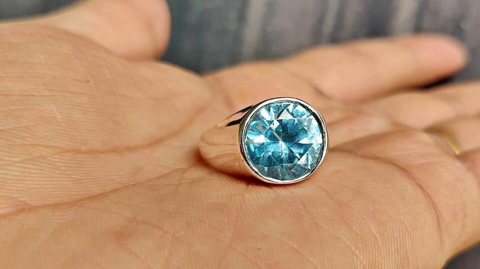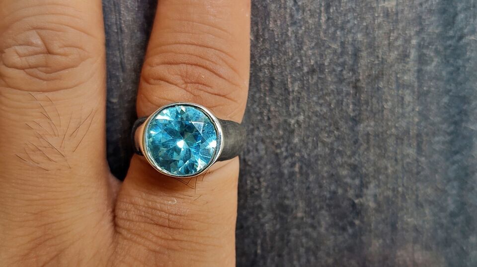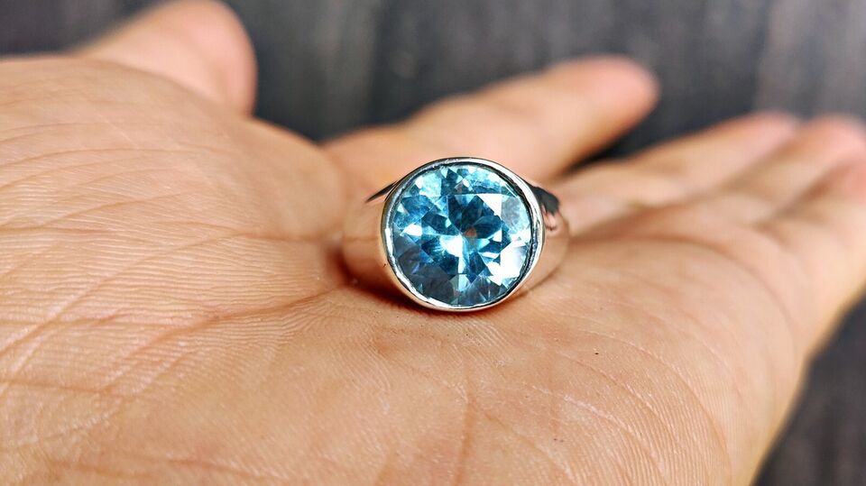 Blue Aquamarine Diamond Cut Handmade Solid Sterling Silver Unisex Ring Jewelry