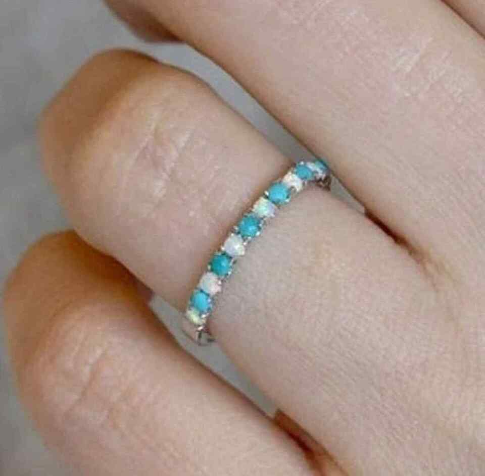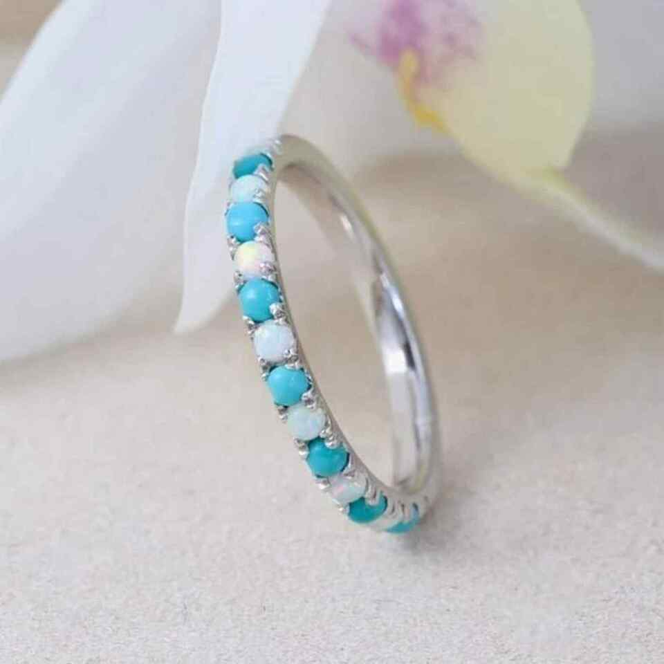 Turquoise And Opal Gemstone Half Eternity Silver Women Band Ring Jewelry