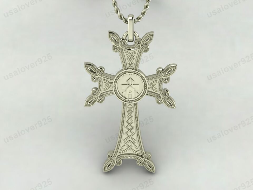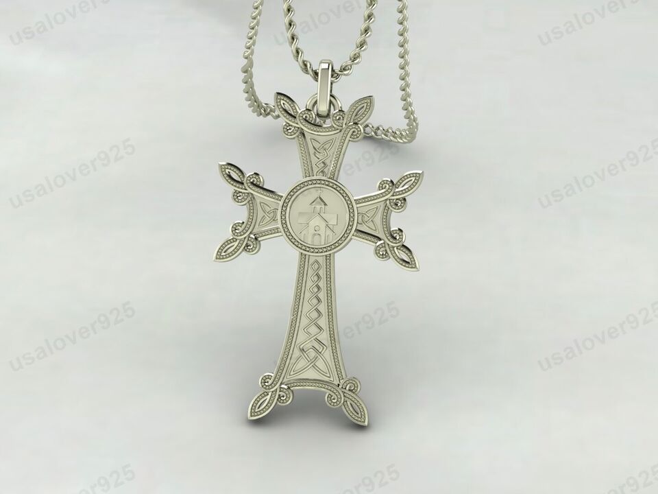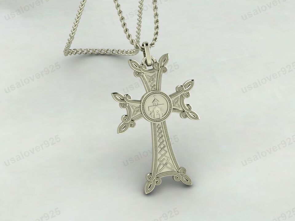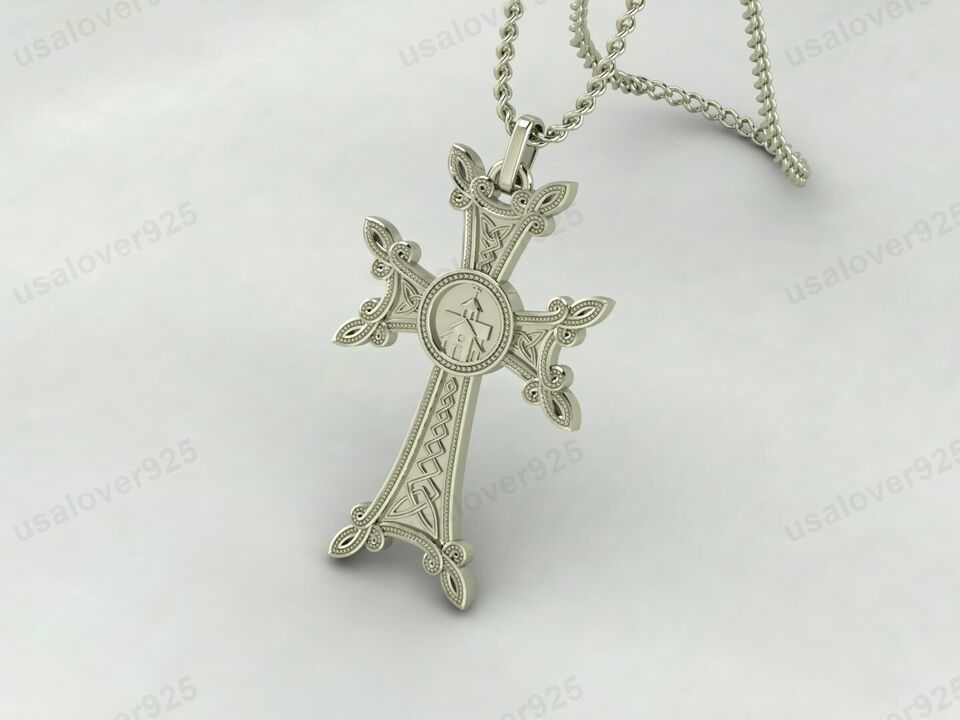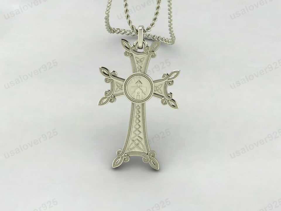Cross Jesus Pendant Art Deco Antique Handmade 925 Silver Modern Unique Necklace