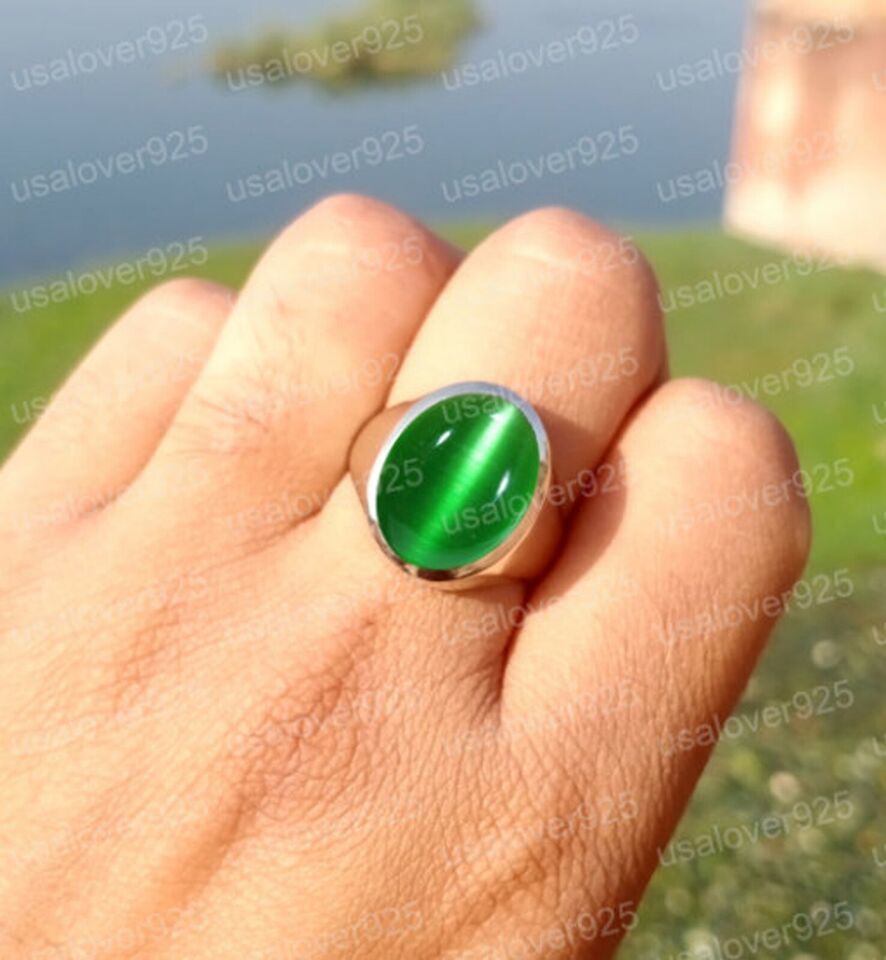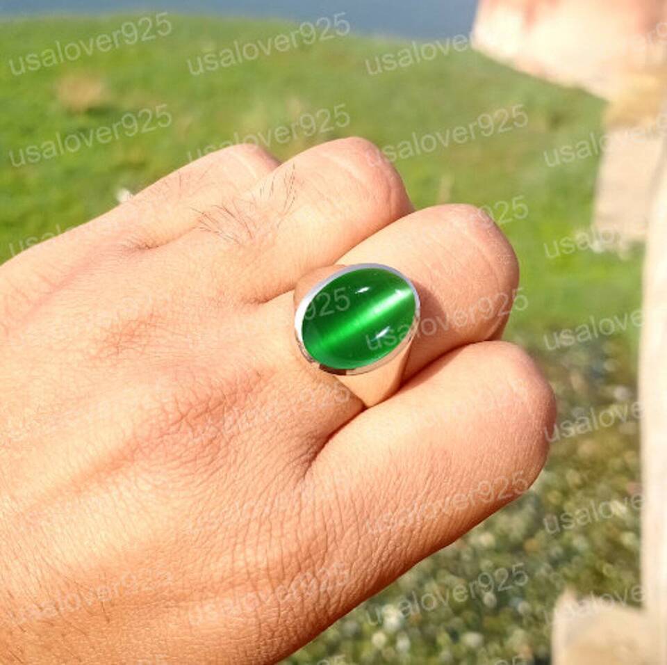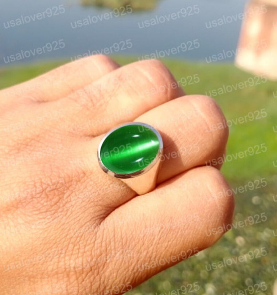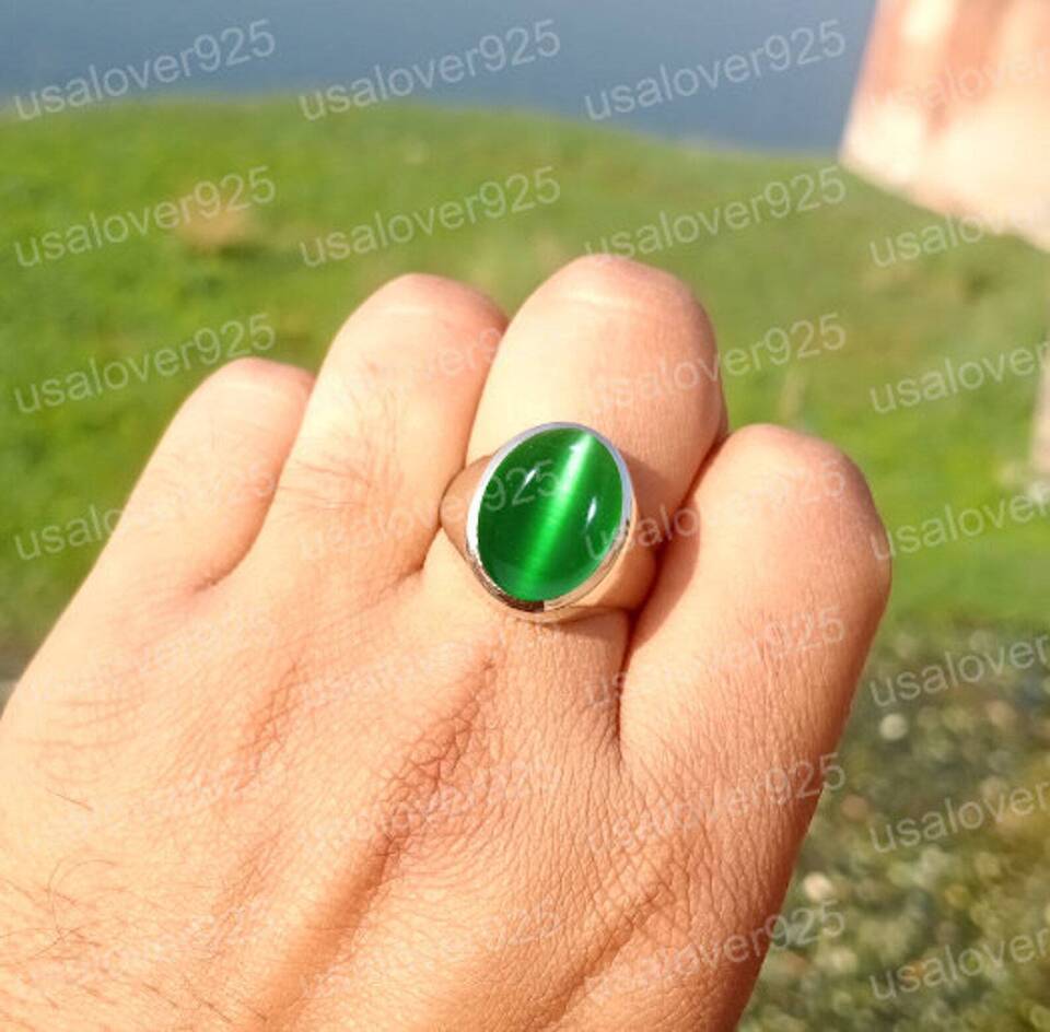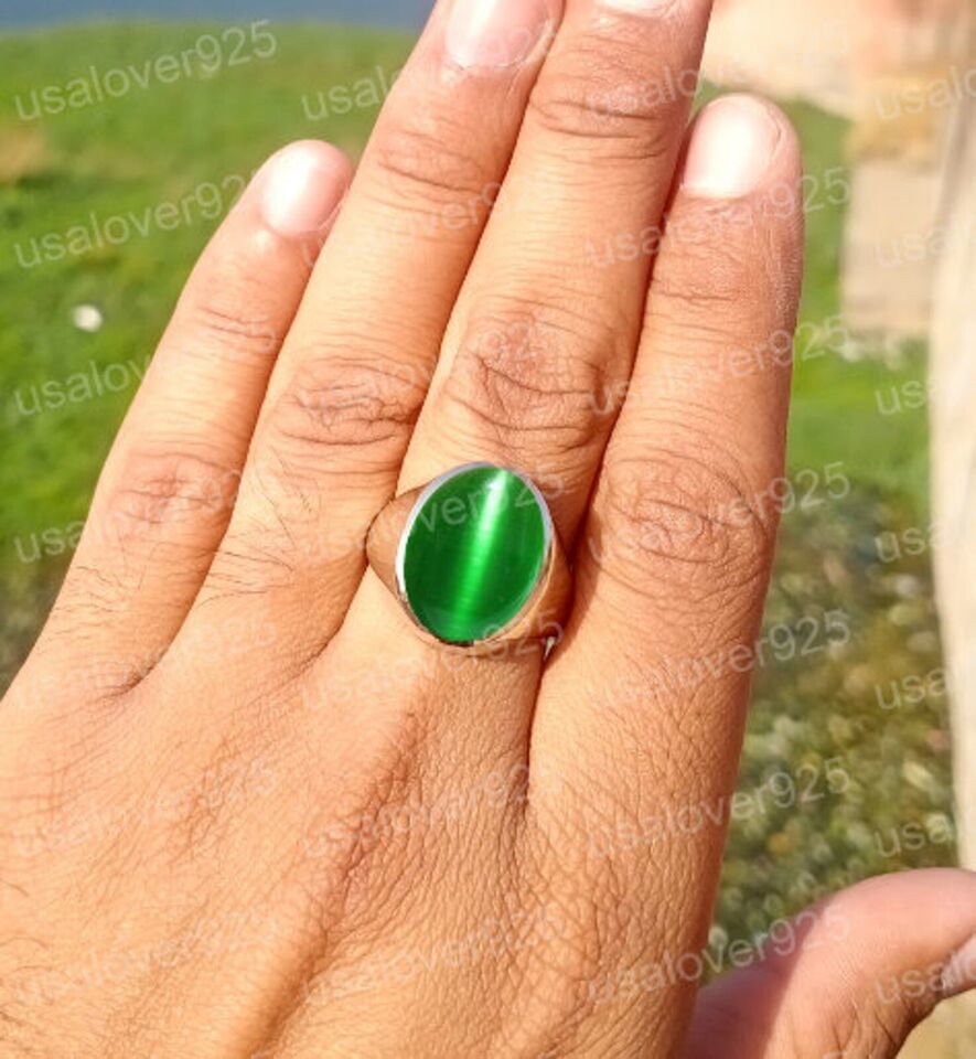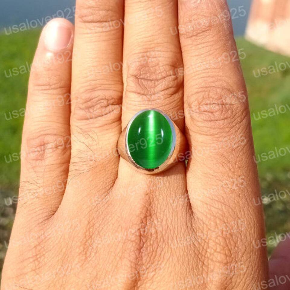 Cats Eye Chrysoberyl Green Gemstone Handmade High Quality Brass Men Ring Jewelry