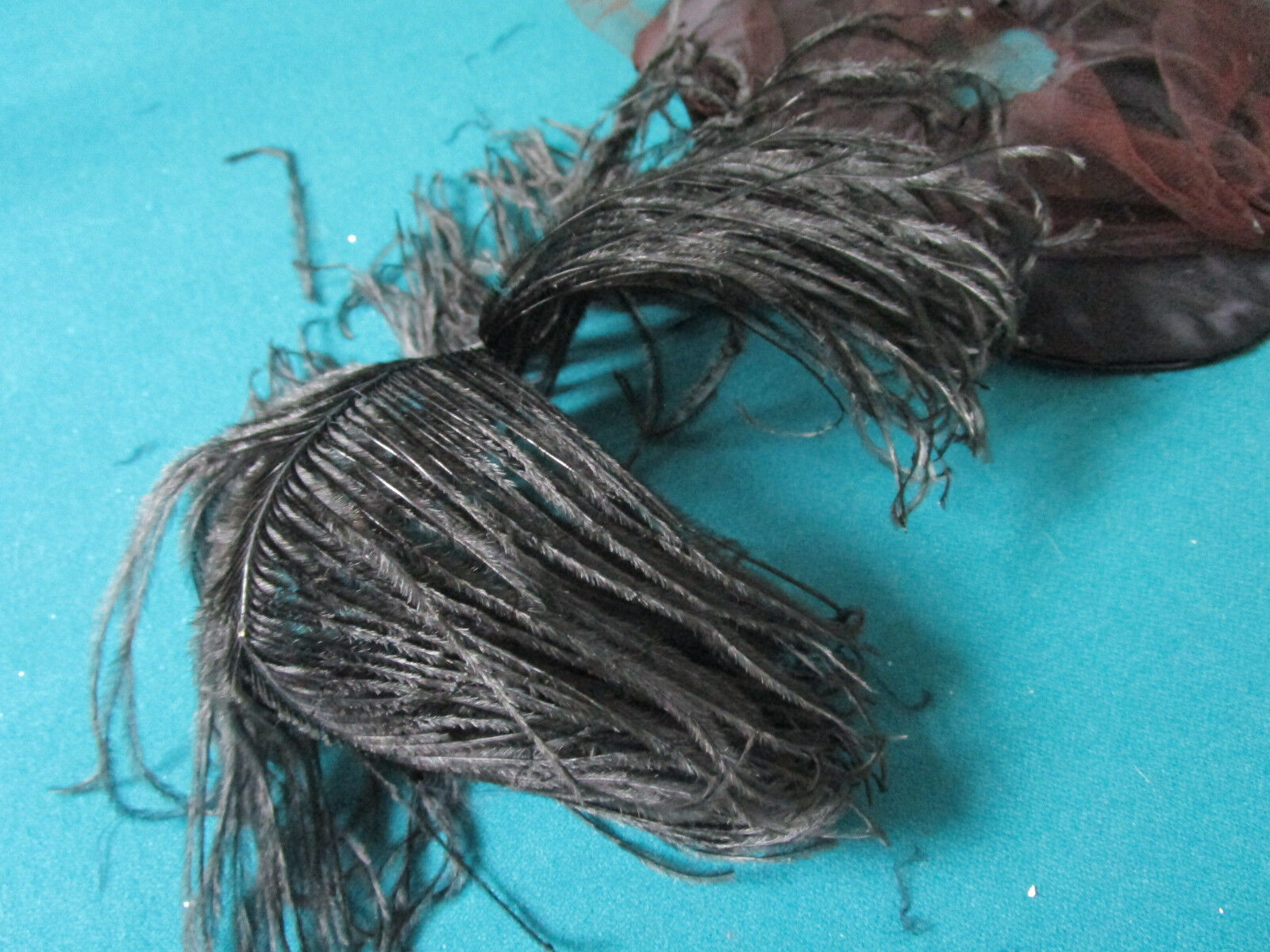 black dress and has a couple feathered boa's to accompany the dress as well as
