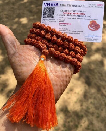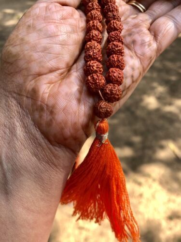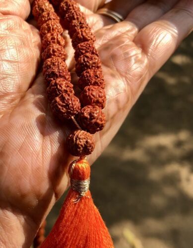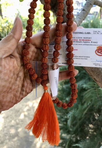 LAB CERTIFIED 5 Mukhi RUDRAKSHA Rudraksh Mala ROSARY 108+1 Prayer Beads, Orange