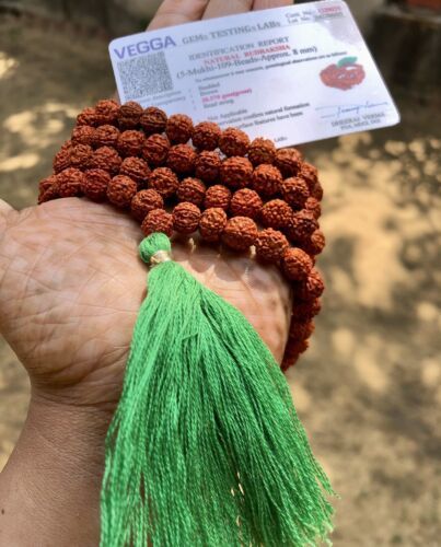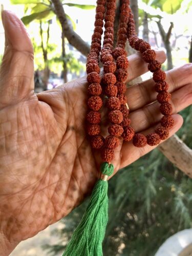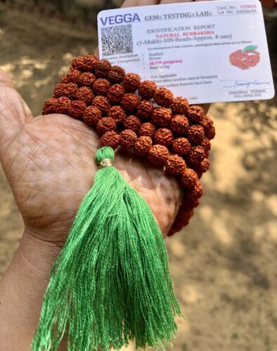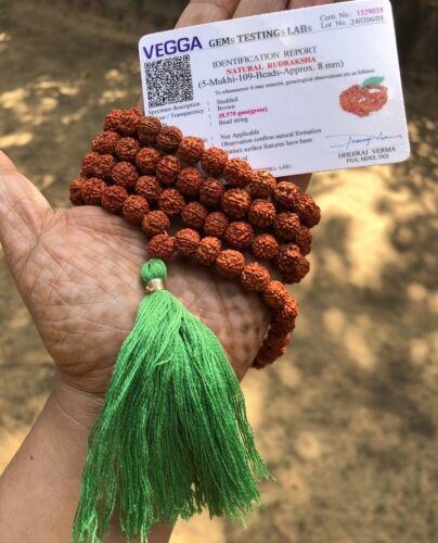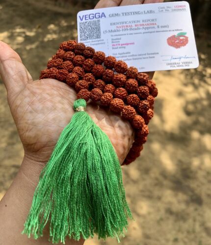 LAB CERTIFIED 5 Mukhi RUDRAKSHA Rudraksh Mala ROSARY 108+1 Prayer Beads, Green