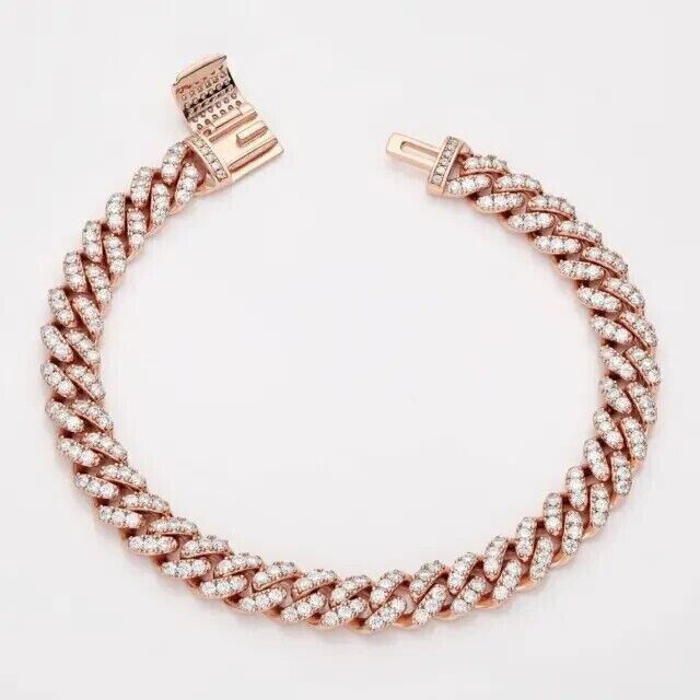 8Ct Round Cut Lab Created Diamond Cuban Link Bracelet 14k Rose Gold Plated