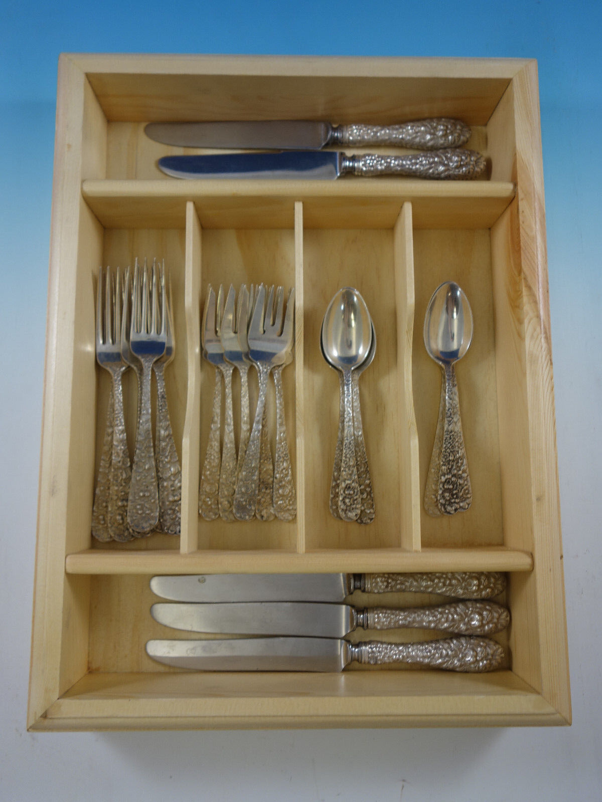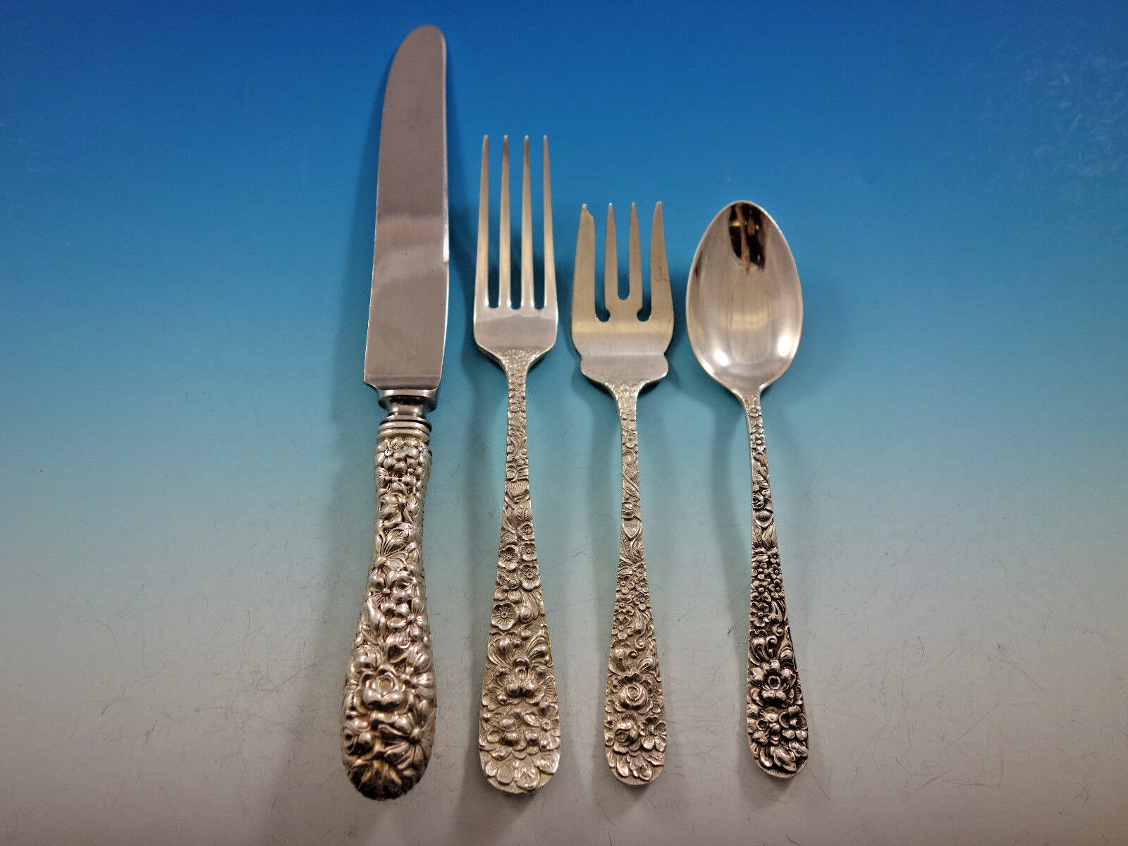 Rose by Stieff Sterling Silver Flatware Set Service 24 pieces Repousse