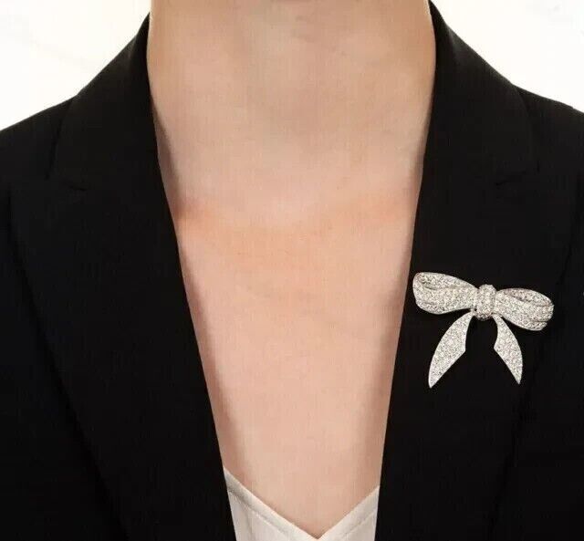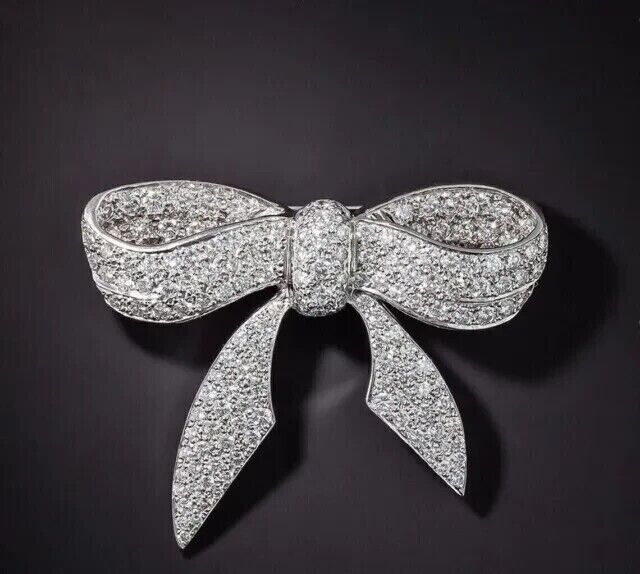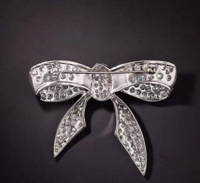 3Ct Round Cut Lab-Created Diamond Bow Knot Brooch Pin 14K White Gold Plated