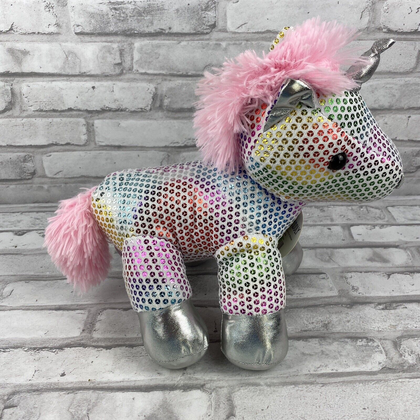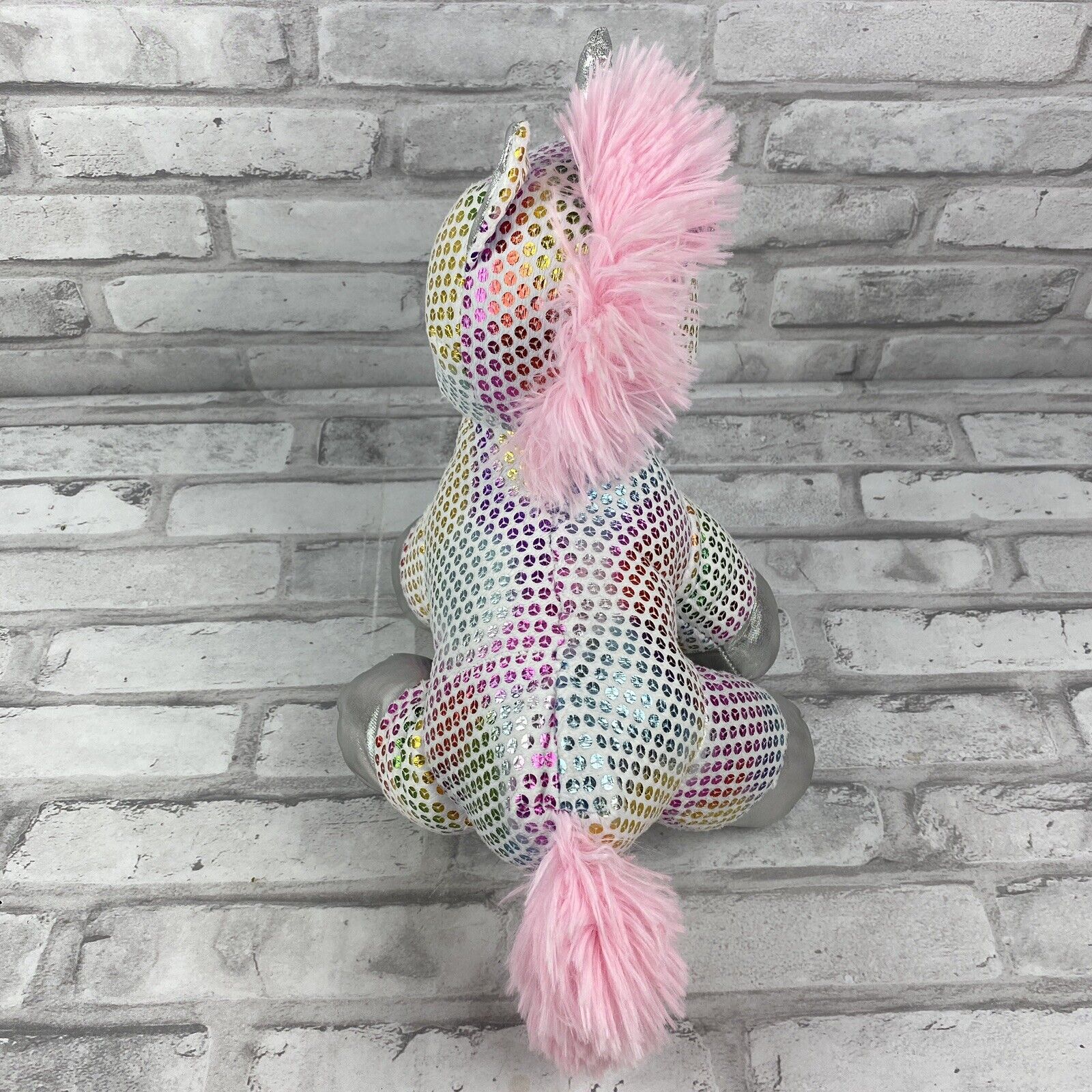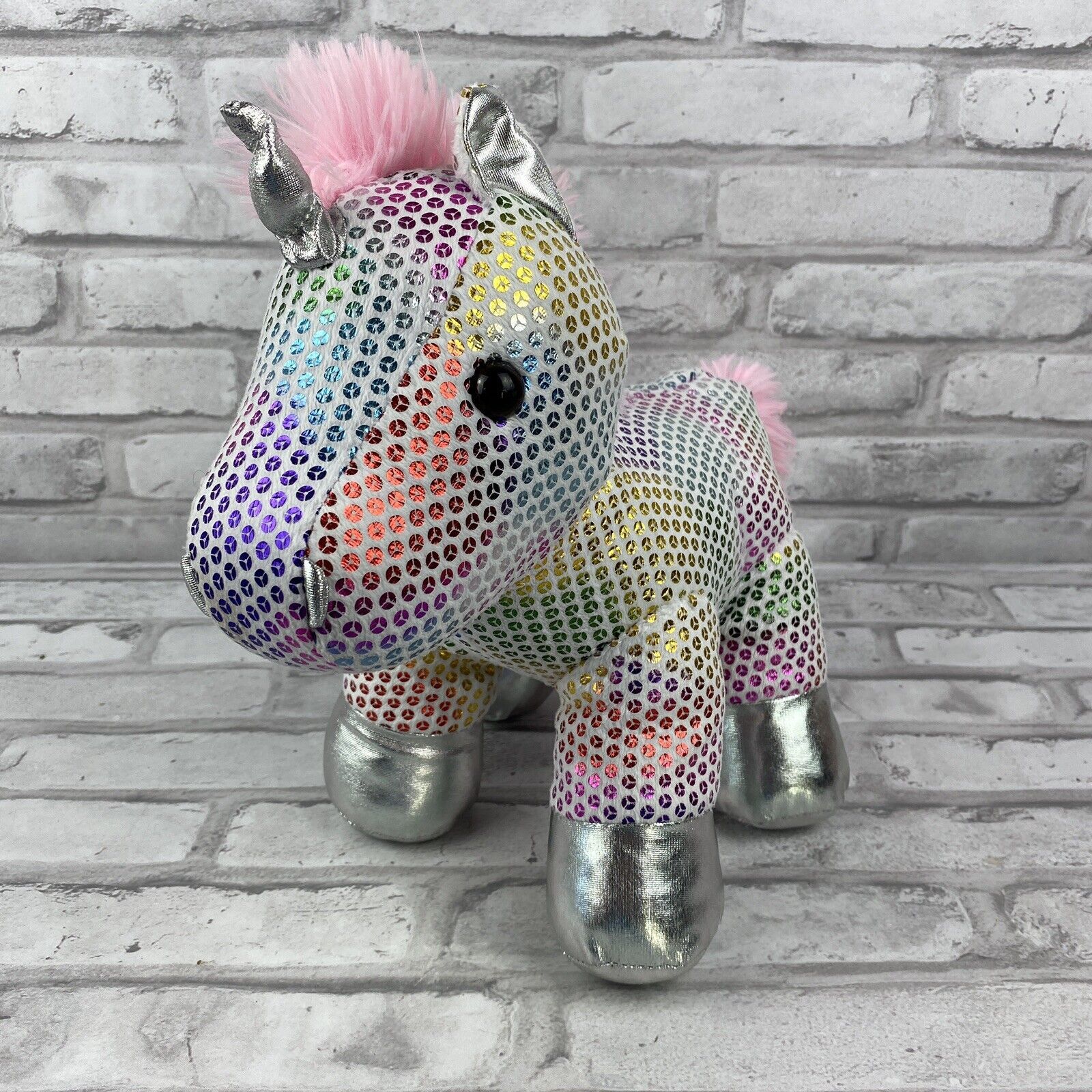 Unicorn Rainbow Shimmer Plush Pink Mane Standing Silver Horn Stuffed Animal