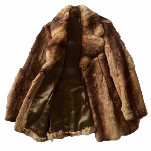Gorgeous Vintage Real Korean Rabbit Fur Coat Brown Y2K Size 10/12 -HEM. Grat shape overall. Please see pictures for condition and measurements.