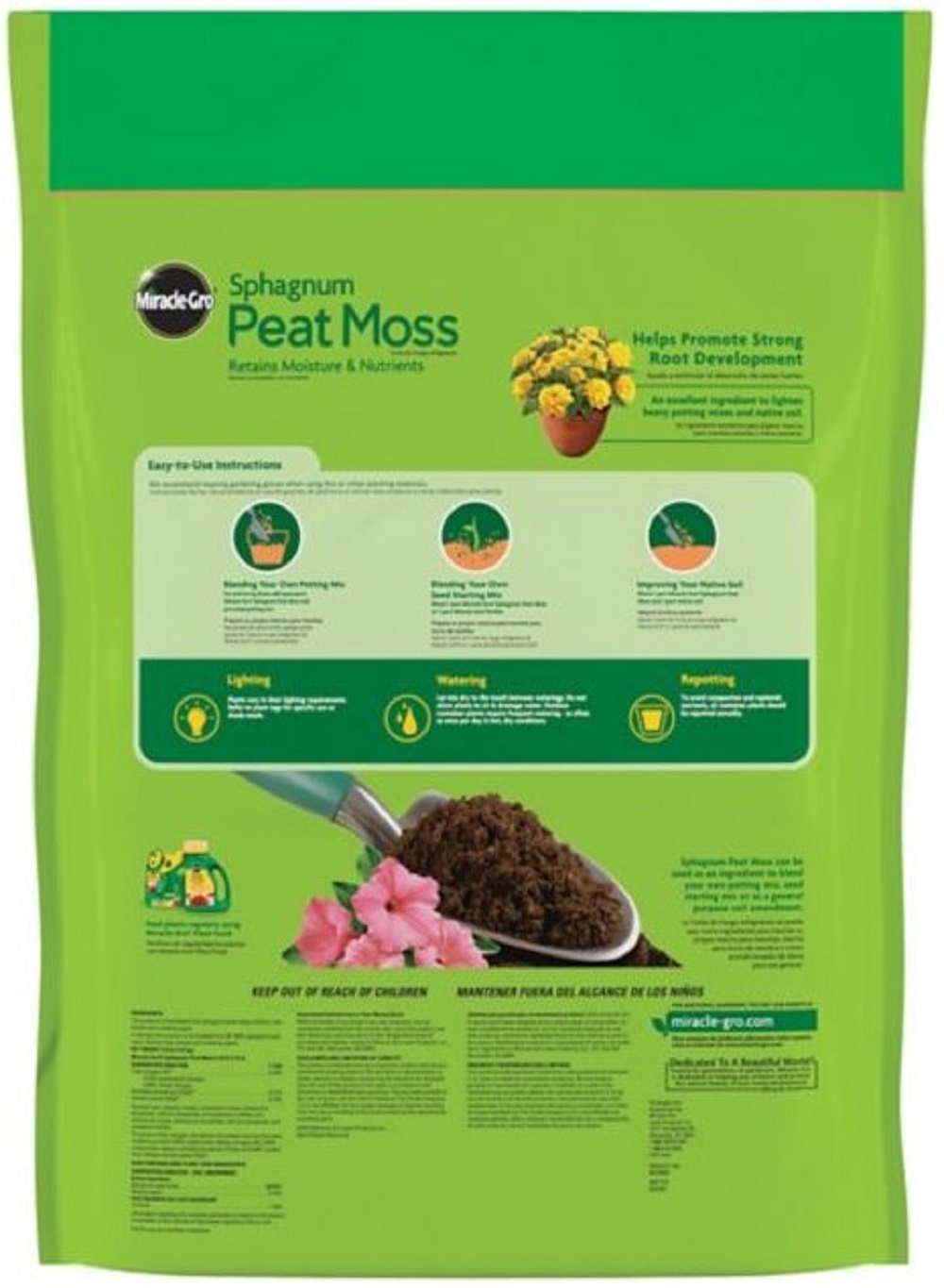 Unique water-holding capabilities help plants require less frequent watering Sphagnum peat moss enriched with Miracle-Gro Plant Food Lightens heavy potting mixes and native soil while retaining moisture and nutrients Peat moss helps promote strong root development For use in containers and in-ground