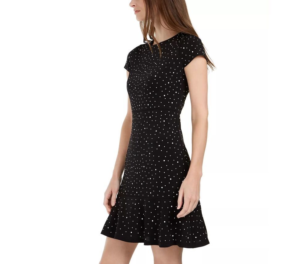 Michael Michael Kors Womens Floral Stud Flounce Hem Dress. Adorned in floral studs, this dress from MICHAEL Michael Kors features a flounced hem for twirl-worthy appeal.95% Polyester 5% Elastane.