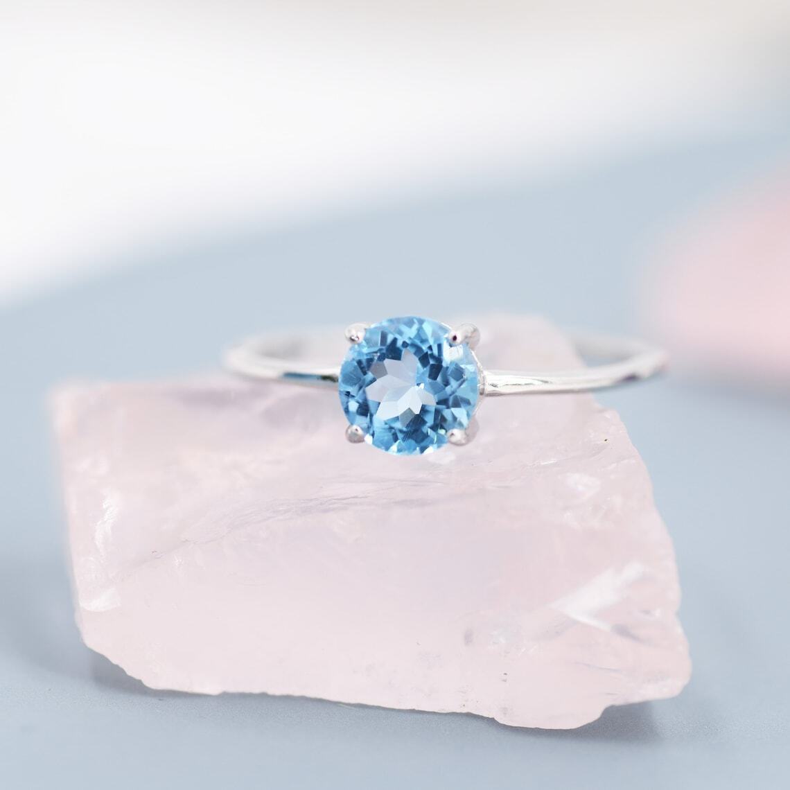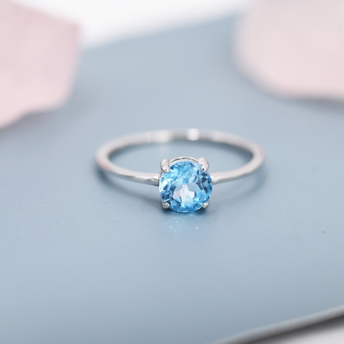Blue Swiss Topaz Round Gemstone 925 Sterling Silver Women Solitaire Ring Jewelry