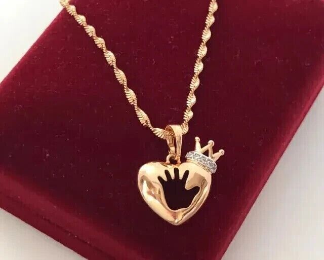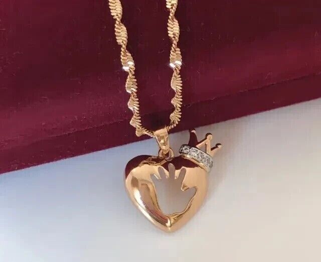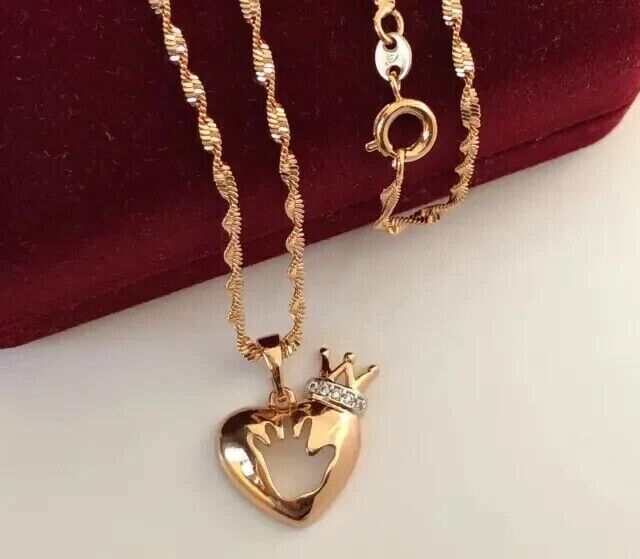 1Ct Round Cut Crown Heart Moissanite Pendant 14K Yellow Gold Plated Free Chain