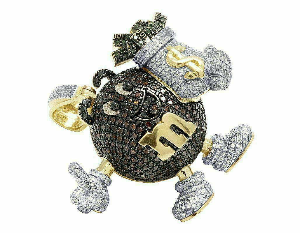 2Ct Round Cut Diamond Money Bag Dollar Sign Hip Hop Pendant 14k Yellow Gold Over