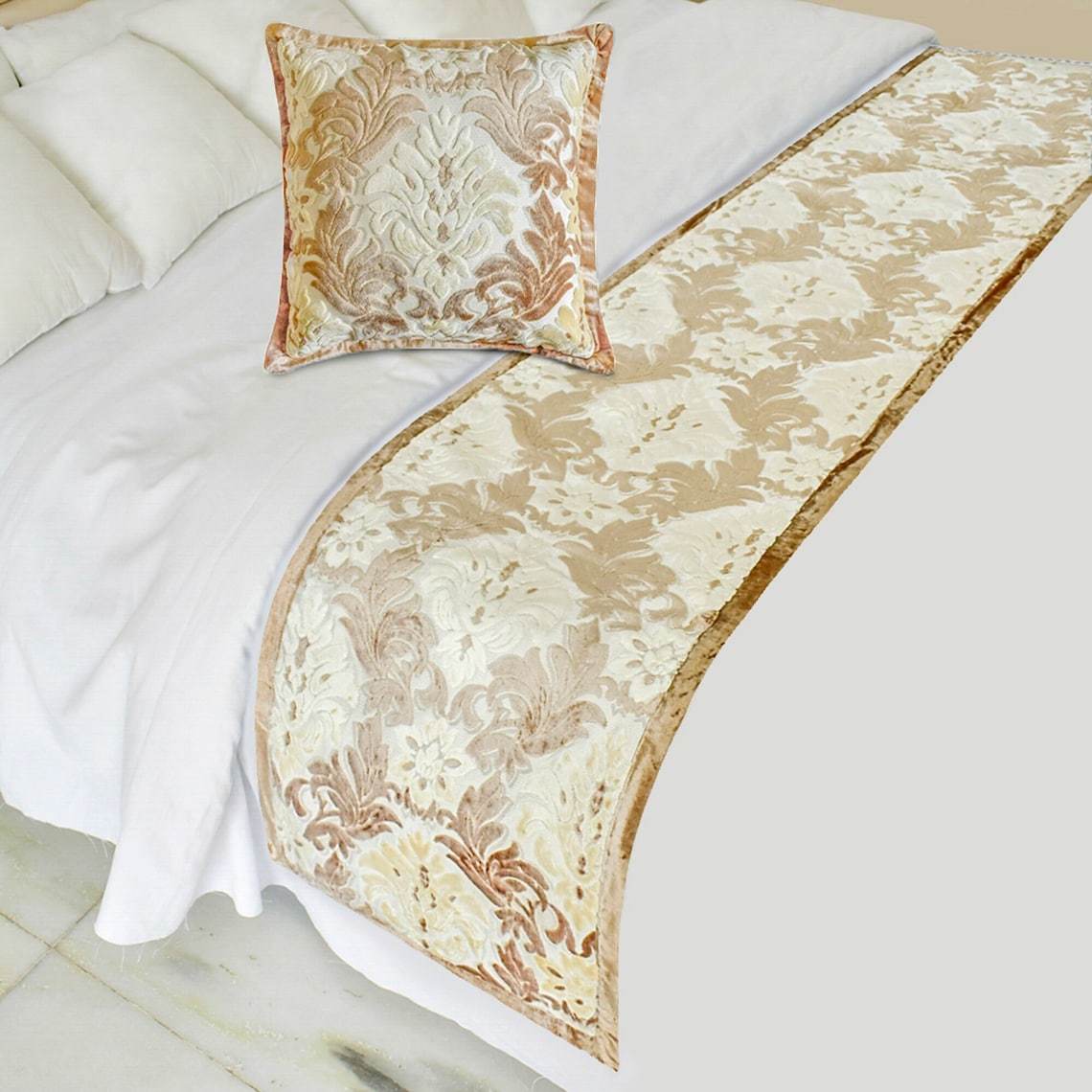 Emmeline - Velvet Beige Bed Runner and Pillow Cover
