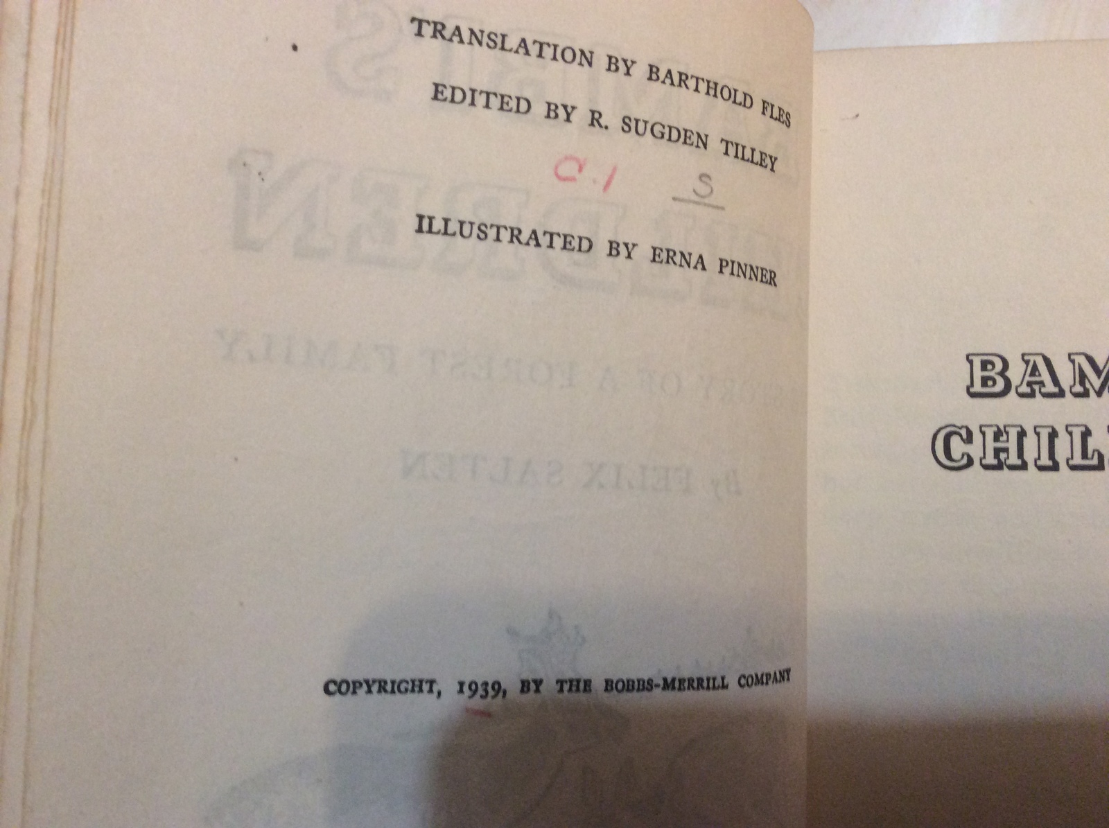 BAMBI'S CHILDREN by FELIX SALTEN - Hardcover - 1939 EDITION - Free Shipping