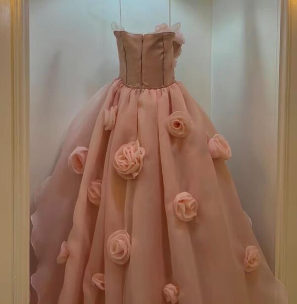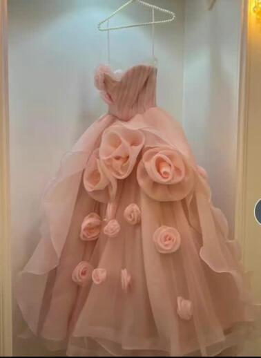 Sweetheart Organza Layers Hand Made Flowers Girl's Dress Roses Evening Dresses