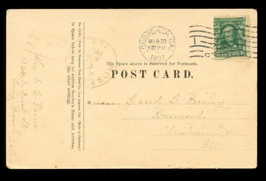 Vintage Postcard Pier and Auditorium Long Beach California 1907 Cancel
