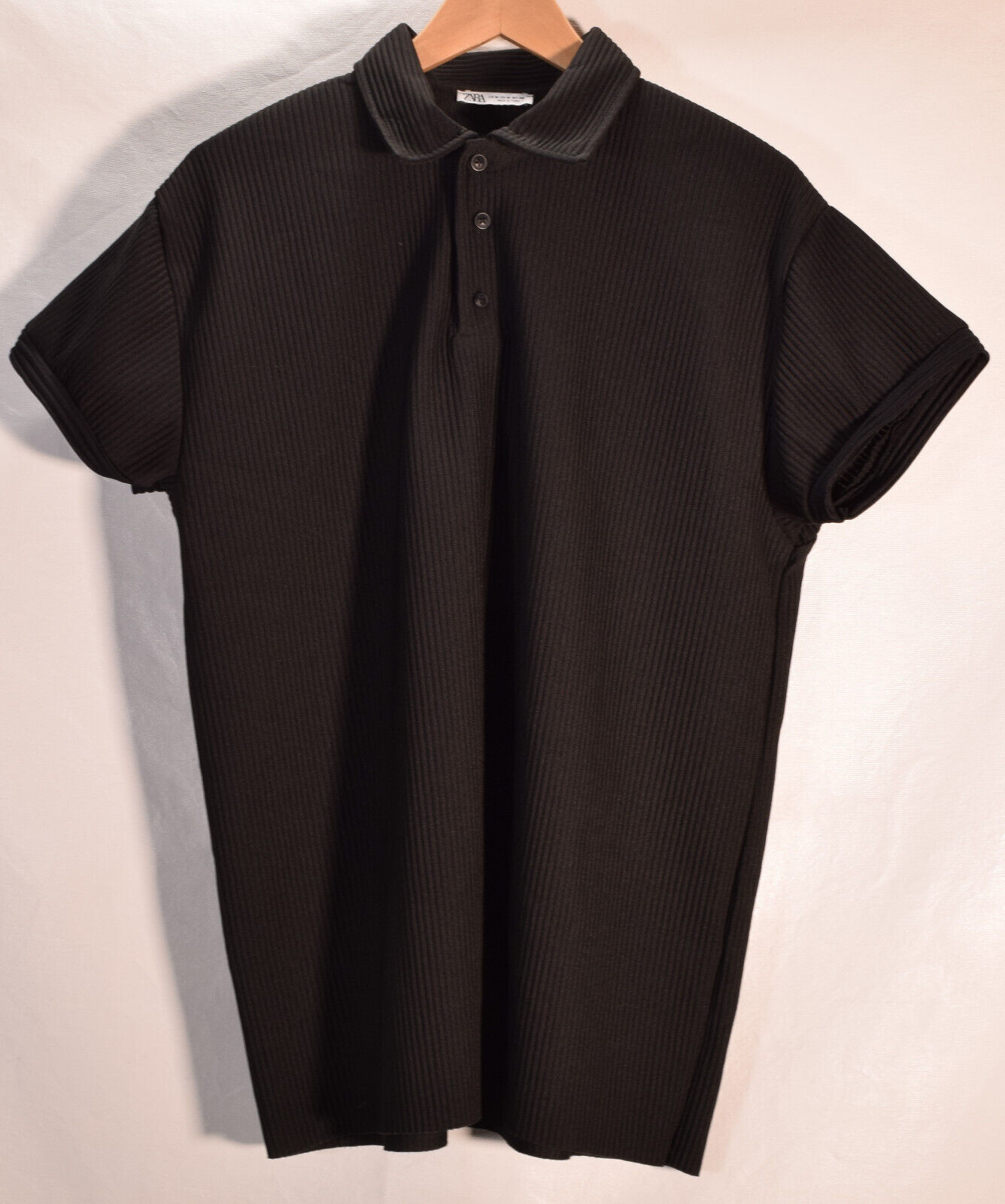 Zara Mens SS Collared SS T-shirt Striped Pattern Black M