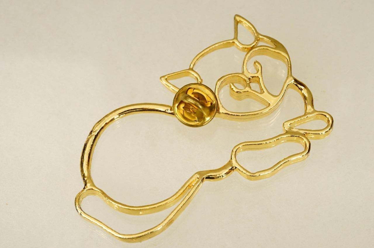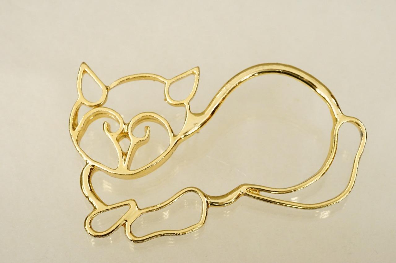 Costume Jewelry Openwork Animal Kitty Cat Gold Tone Metal Brooch Pin