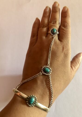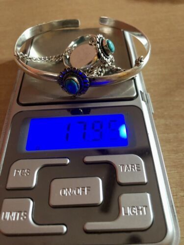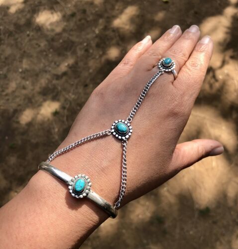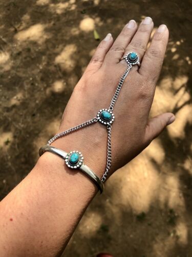 Handmade Cuff Bangle Ring Jewelry German Silver, Natural Turquoise Gemstone 7
