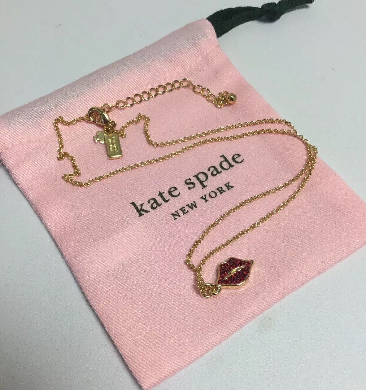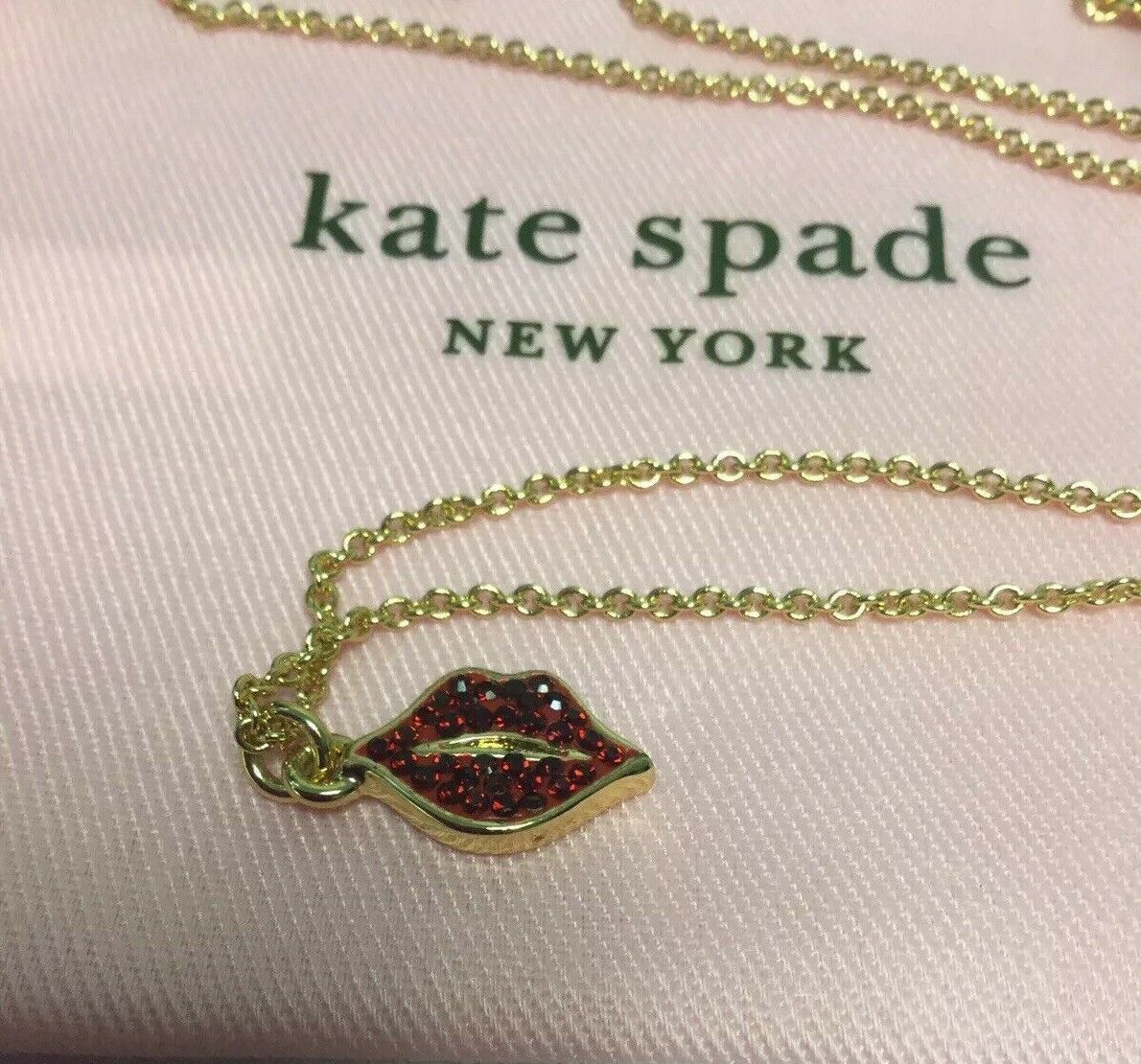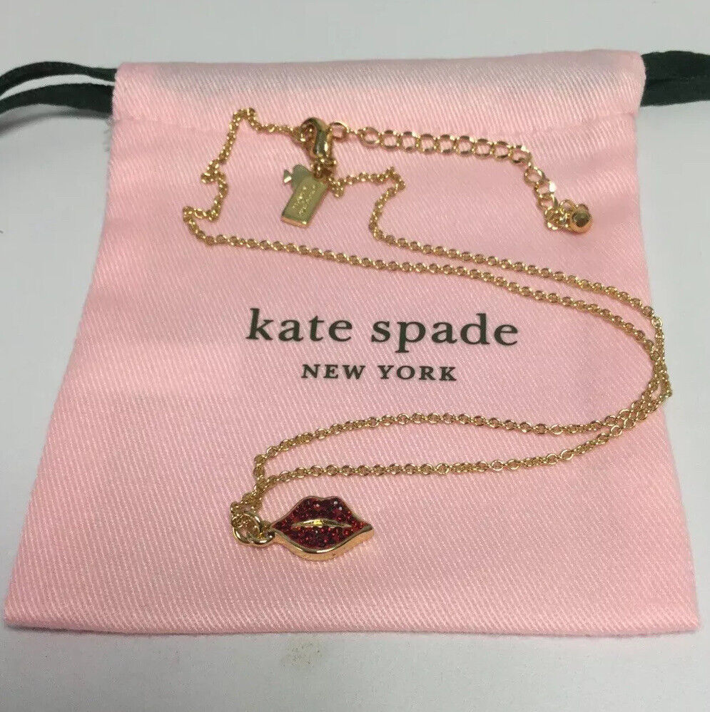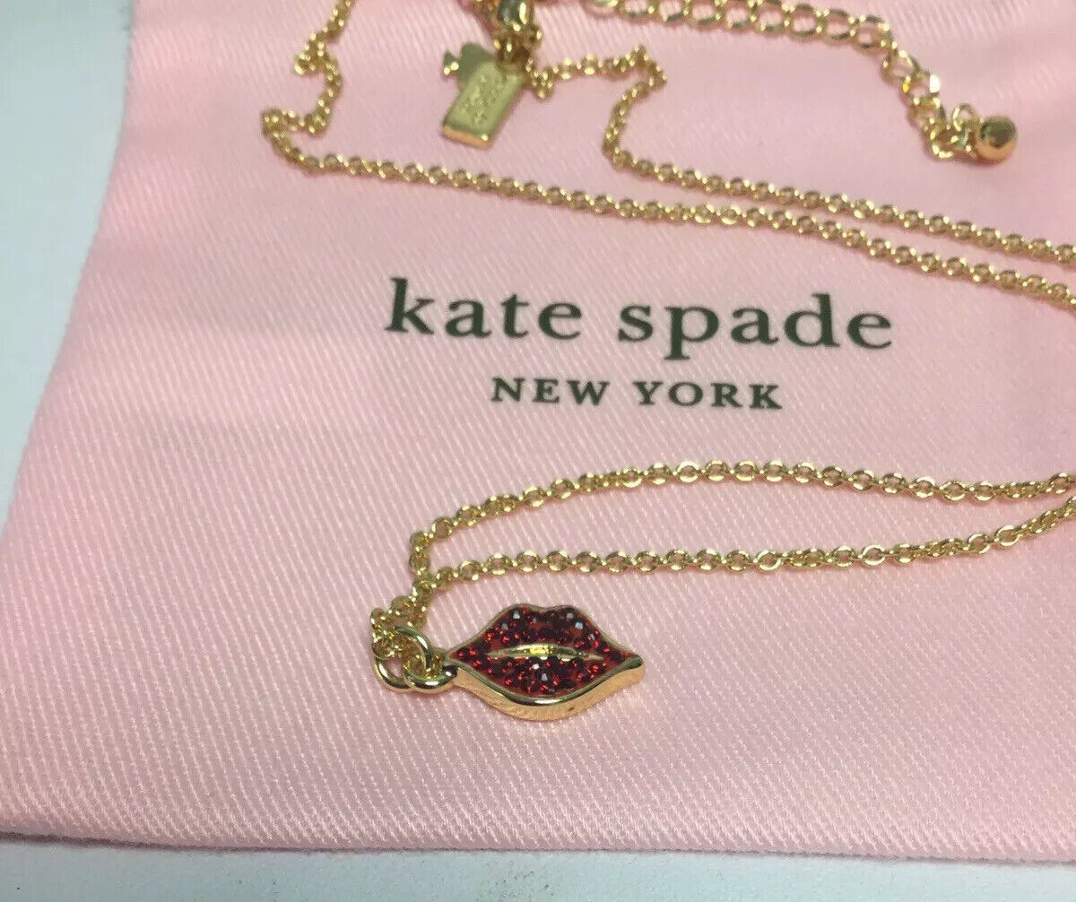 kate spade new york lips Red Pave Pendant Necklace New.