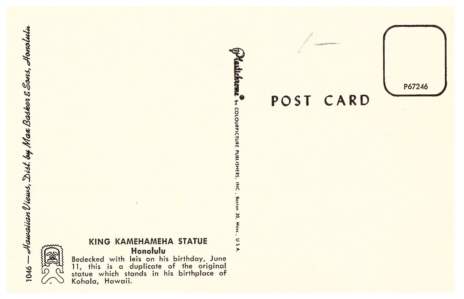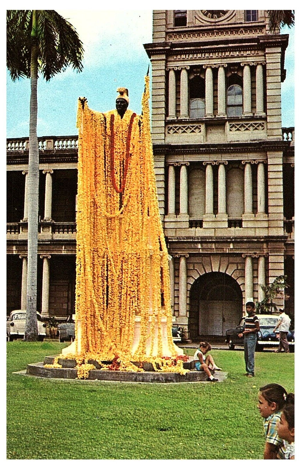 King Kamehameha Statue w Yellow Leis Honolulu Hawaii Postcard